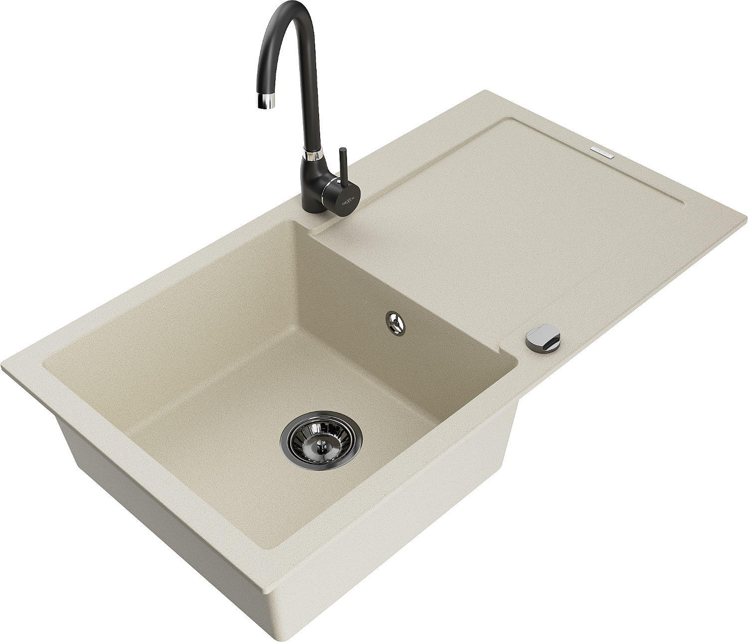 Mexen Leo granitový dřez 1-komorový s odkapávačem a kuchyňskou baterií Telma, béžový - 6501-69-670200-70