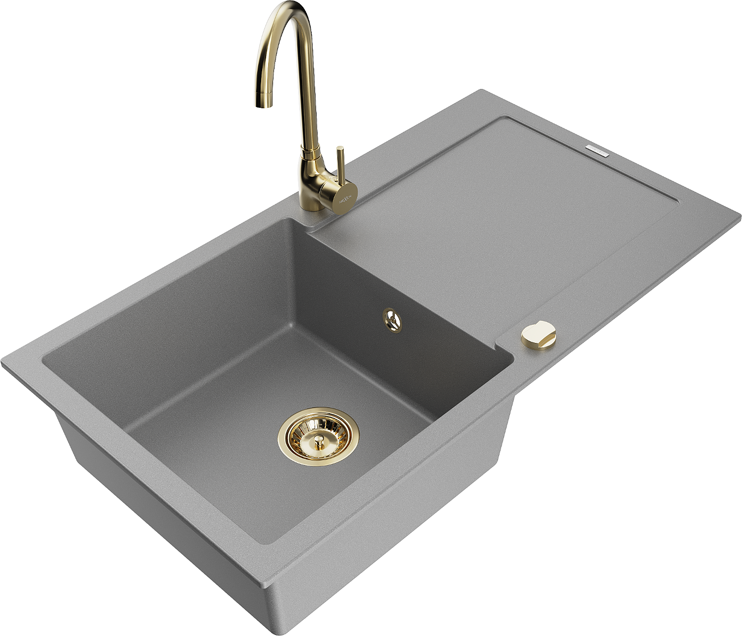 Mexen Leo granitový dřez 1-komorový s odkapávačem a kuchyňskou baterií Telma, šedý - 6501-71-670200-50