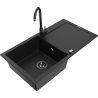 Mexen Leo granitový dřez 1-komorový s odkapávačem a kuchyňskou baterií Telma, šedý - 6501-71-670200-70-B
