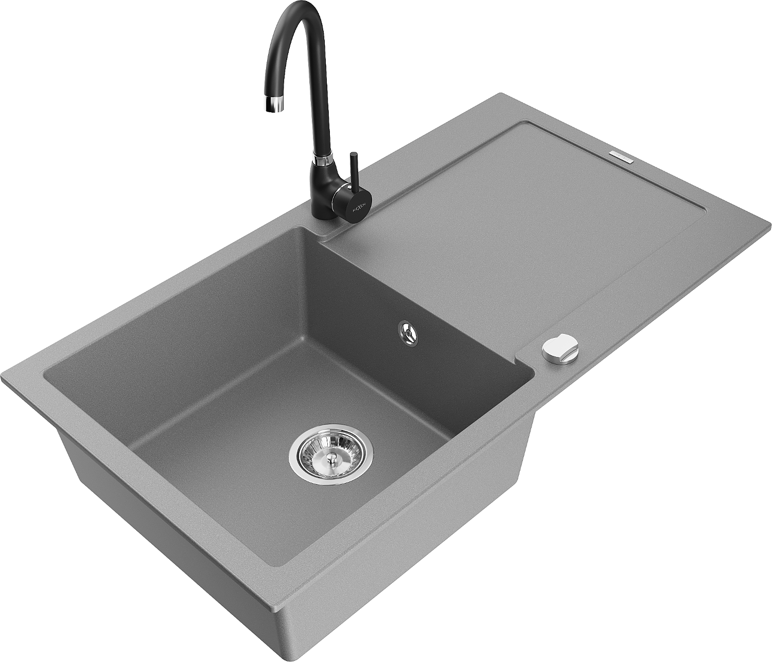 Mexen Leo granitový dřez 1-komorový s odkapávačem a kuchyňskou baterií Telma, šedý - 6501-71-670200-70
