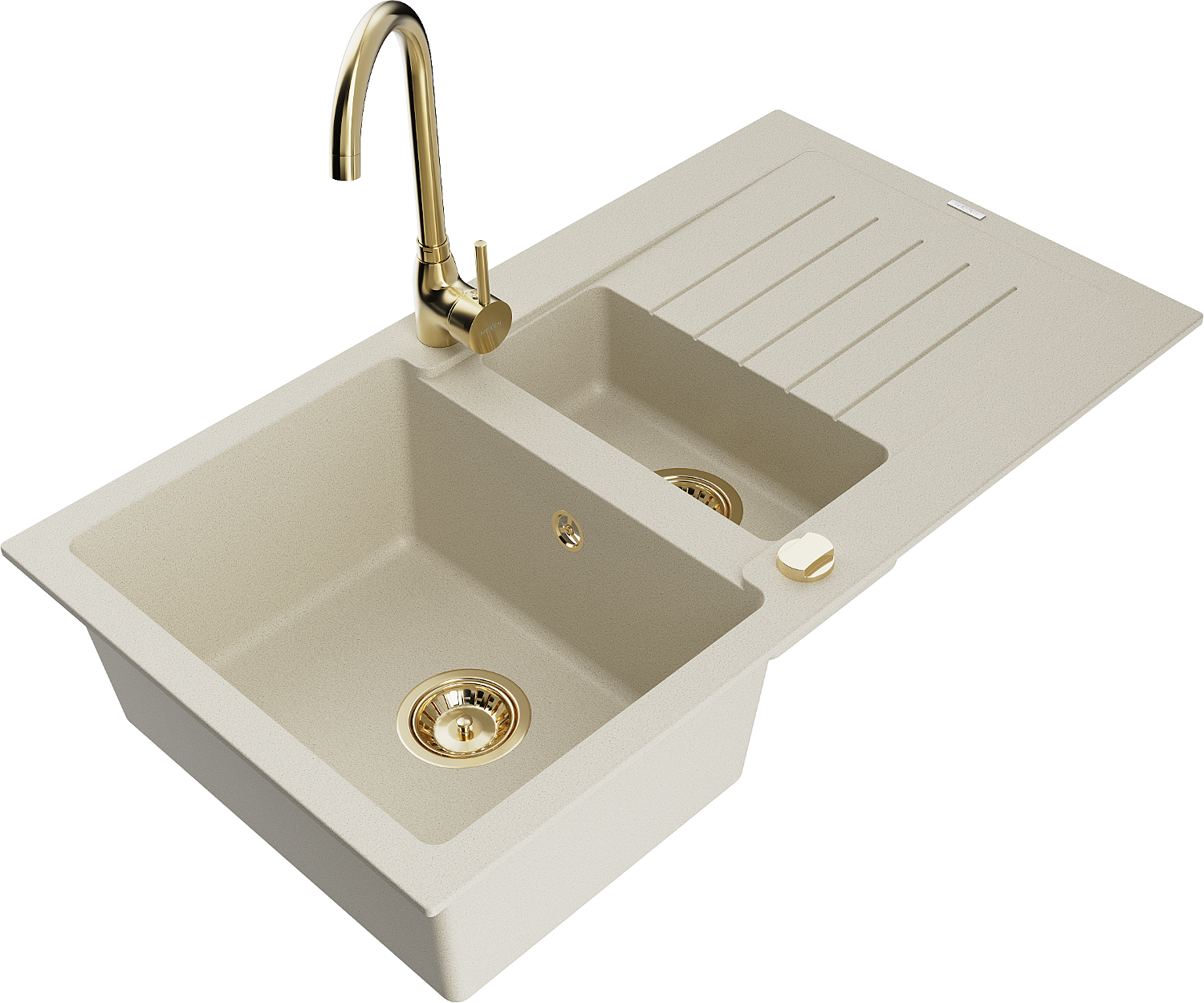 Mexen Matias granitový dřez 1,5-komorový s odkapávačem a kuchyňskou baterií Telma, béžový - 6502-69-670200-50