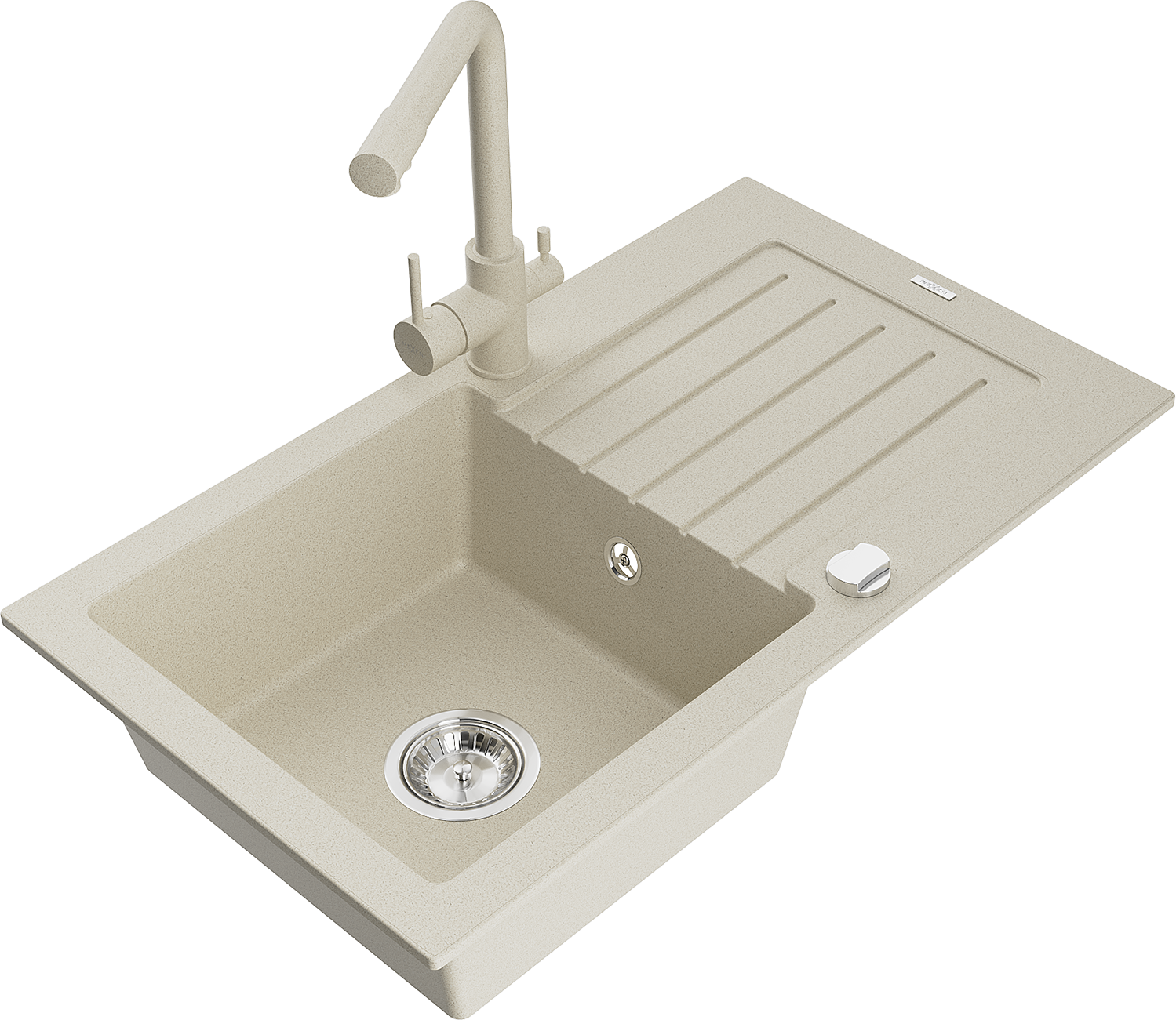 Mexen Pablo granitový dřez 1-komorový s odkapávačem a kuchyňskou baterií Duero, béžový - 6510-69-671600-69