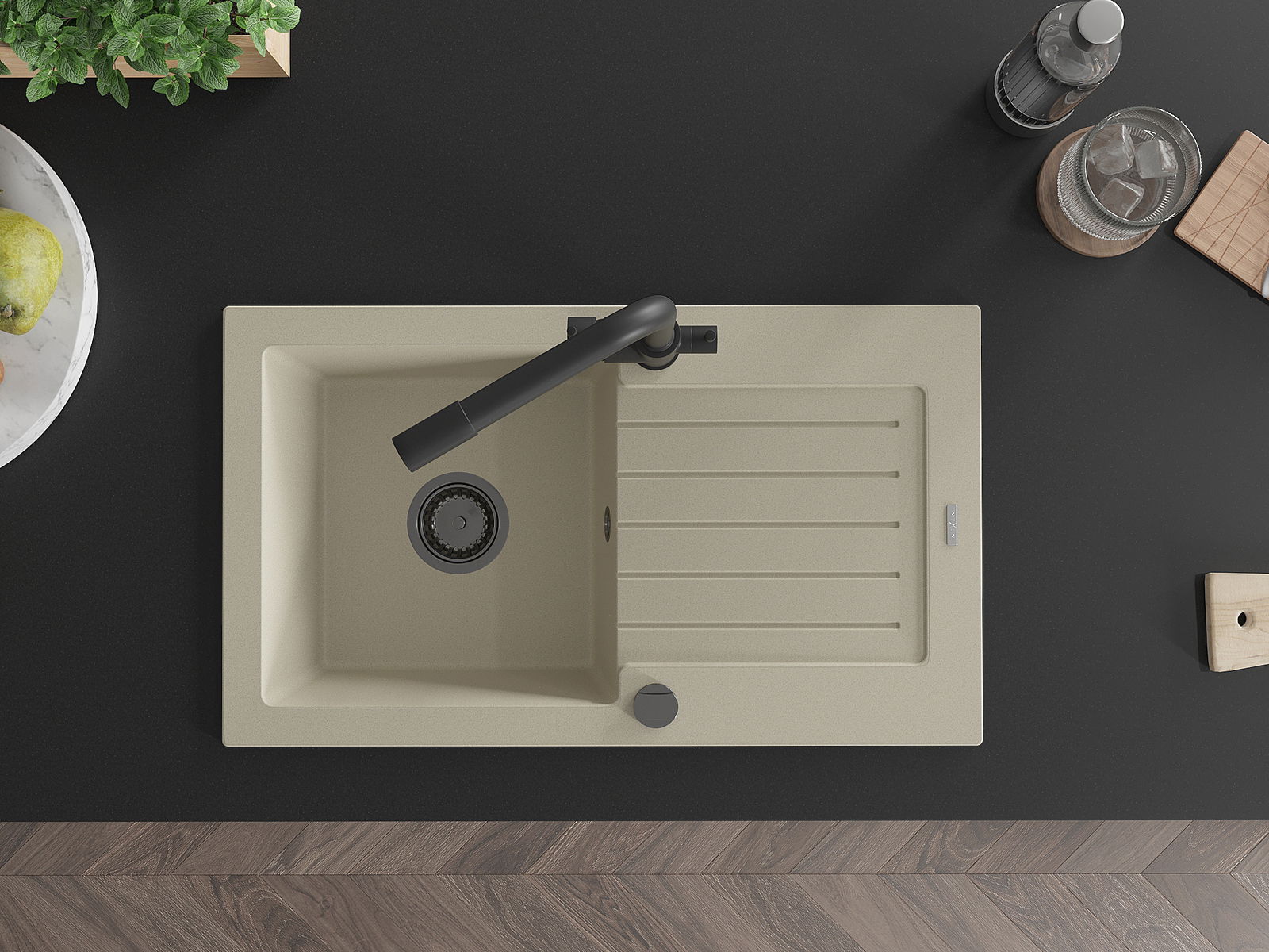 Mexen Pablo granitový dřez s 1 komorou s odkapávačem a kuchyňskou baterií Duero, béžový - 6510-69-671600-70