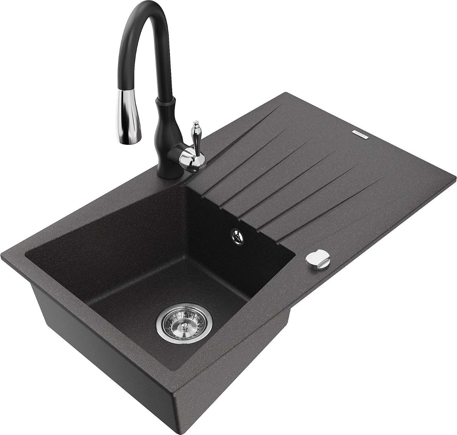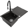 Mexen Cesar žulový dřez 1-komorový s odkapávačem a kuchyňskou baterií Savita, černý skvrnitý - 6514-76-672601-70