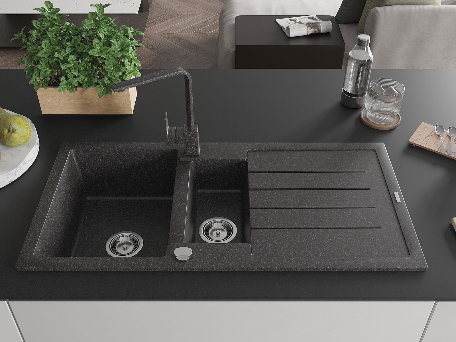 Dřez byl vyroben z vysoce kvalitního granitu. Představuje elegantní a především praktický doplněk každé kuchyně, bez ohledu na její styl. Vysoká kvalita a trvanlivost granitu zajišťují dlouholeté používání.