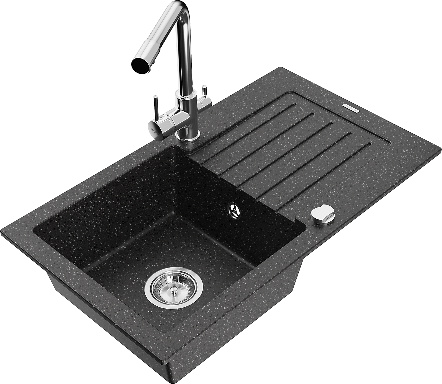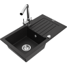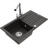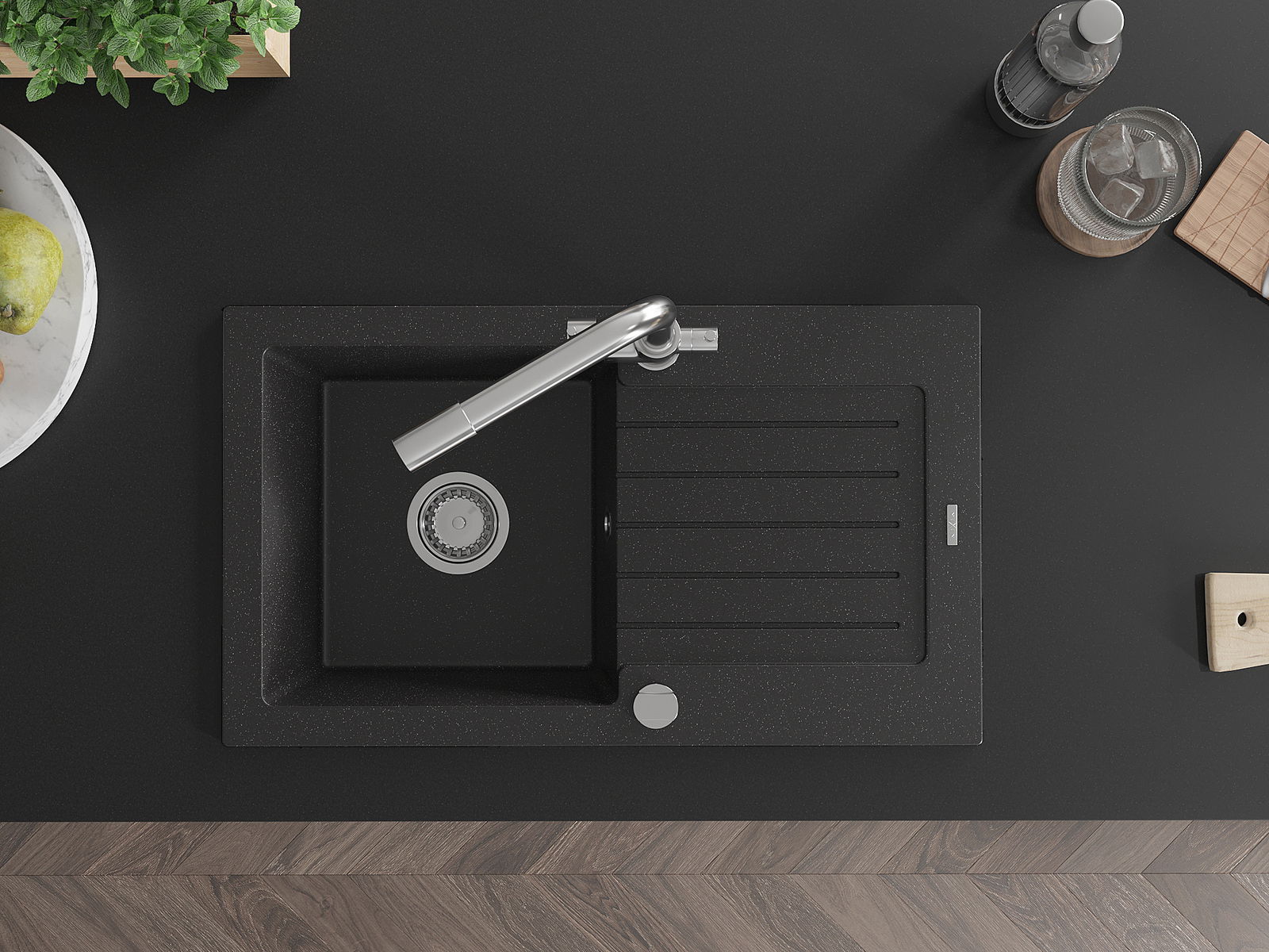 Mexen Pablo granitový dřez 1-komorový s odkapávačem a kuchyňskou baterií Duero, černý/stříbrný metalik - 6510-73-671600-00