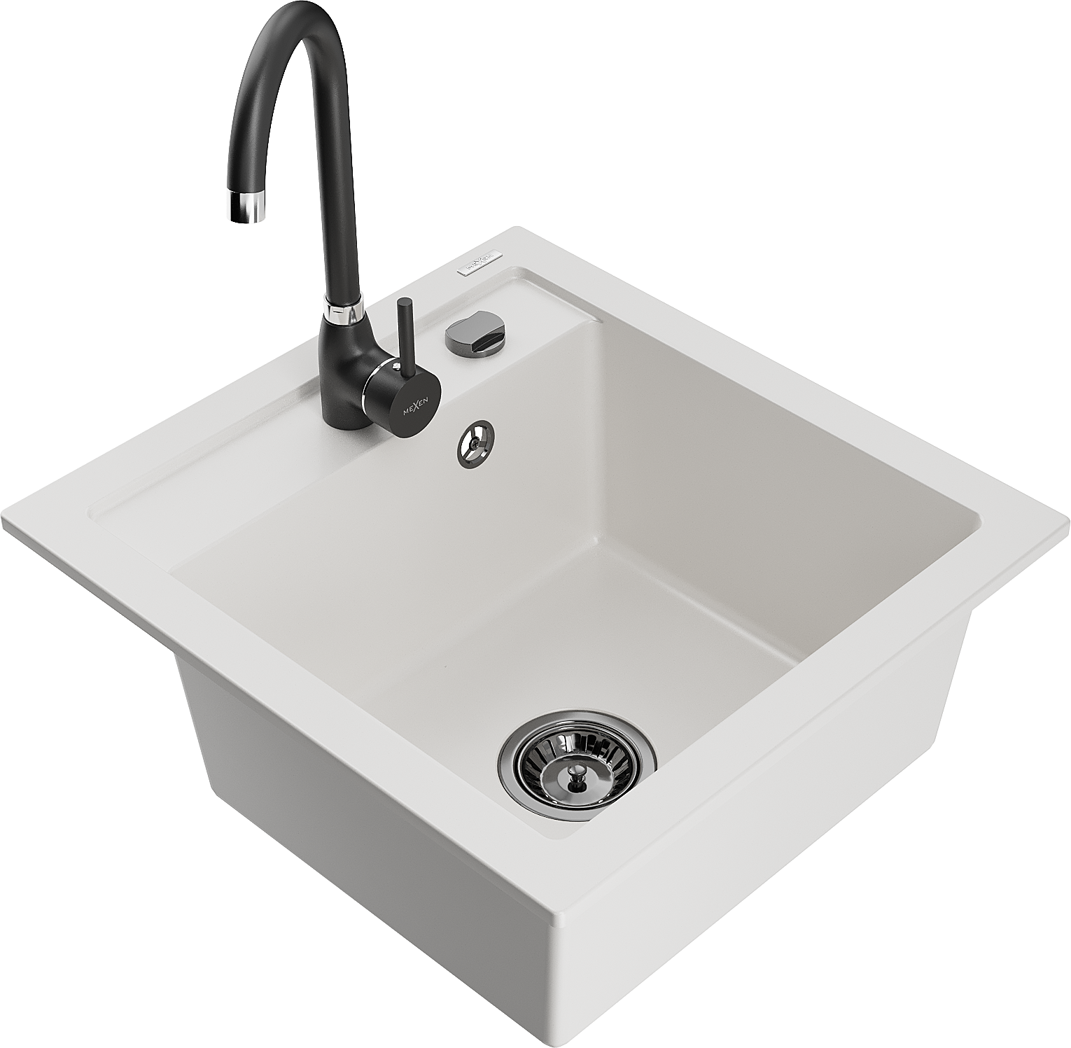 Mexen Vito granitový dřez 1-komorový s kuchyňskou baterií Telma, bílý - 6503-20-670200-70