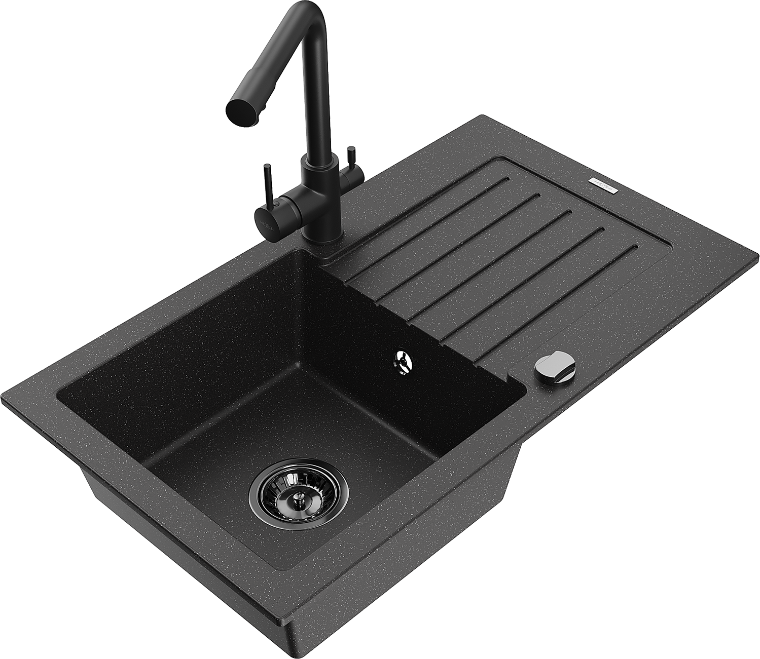 Mexen Pablo granitový dřez s odkapávačem a kuchyňskou baterií Duero, černý/stříbrný metalik - 6510-73-671600-70-B
