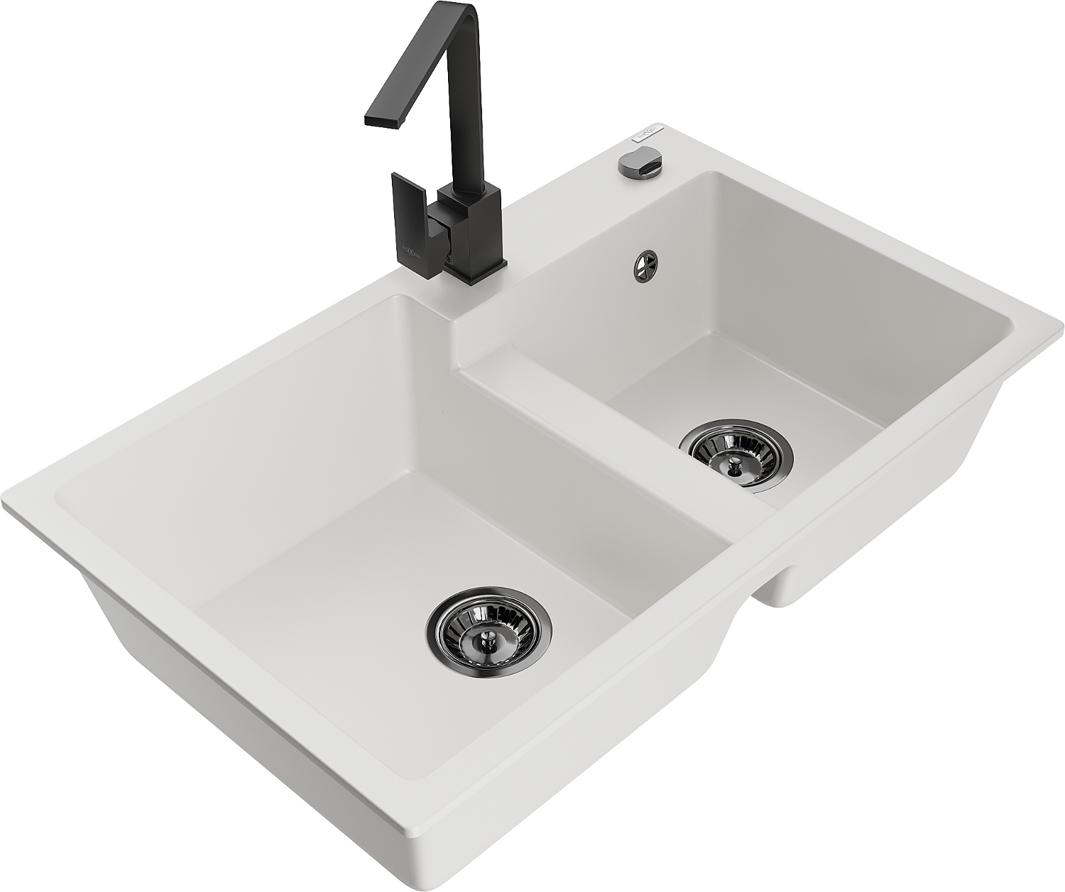Mexen Tomas dřez žulový 2-komorový s kuchyňskou baterií Rita, bílý - 6516-20-670300-70
