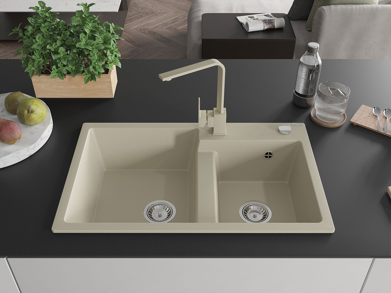 Dřez byl vyroben z vysoce kvalitního granitu. Představuje elegantní a především praktický doplněk každé kuchyně, bez ohledu na její styl. Vysoká kvalita a trvanlivost granitu zajišťují dlouholeté používání.