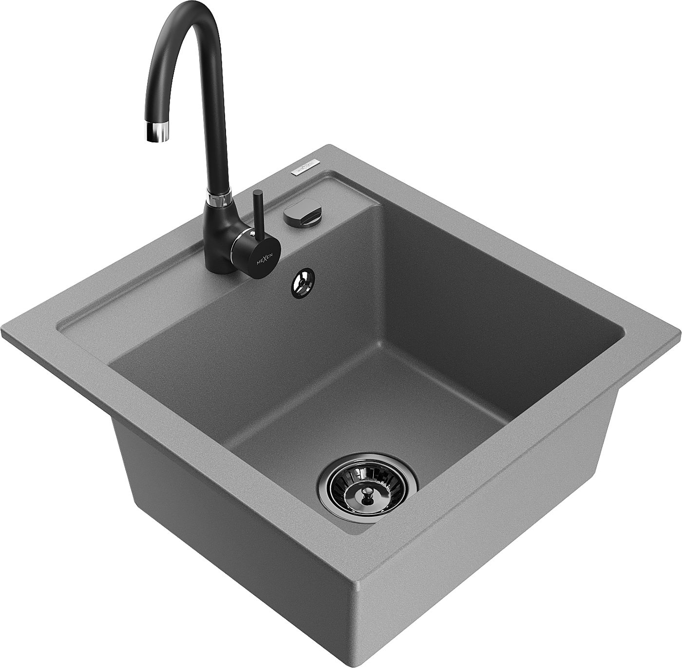 Mexen Vito granitový dřez 1-komorový s kuchyňskou baterií Telma, šedý - 6503-71-670200-70-B
