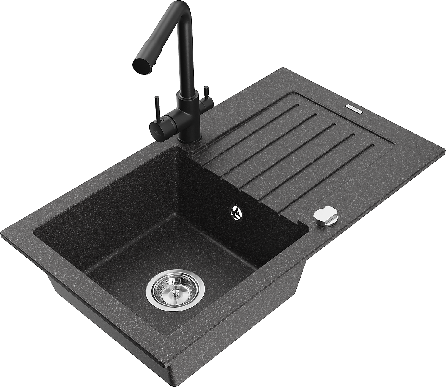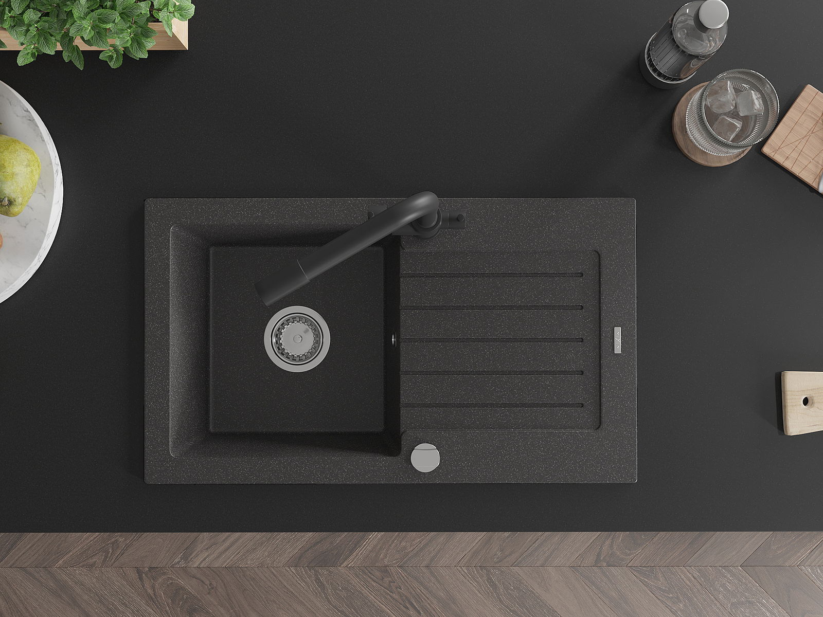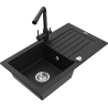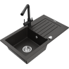 Mexen Pablo granitový dřez s 1 komorou, odkapávačem a kuchyňskou baterií Duero, černý krupicový - 6510-76-671600-70