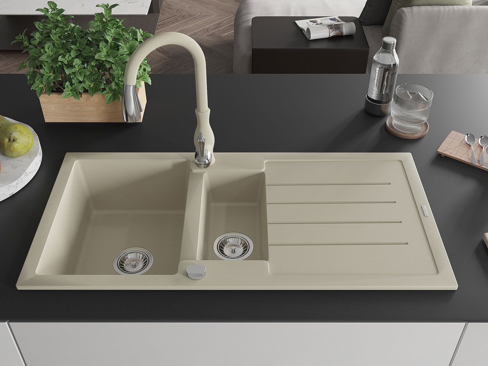 Dřez byl vyroben z vysoce kvalitního granitu. Představuje elegantní a především praktický doplněk každé kuchyně, bez ohledu na její styl. Vysoká kvalita a trvanlivost granitu zajišťují dlouholeté používání.