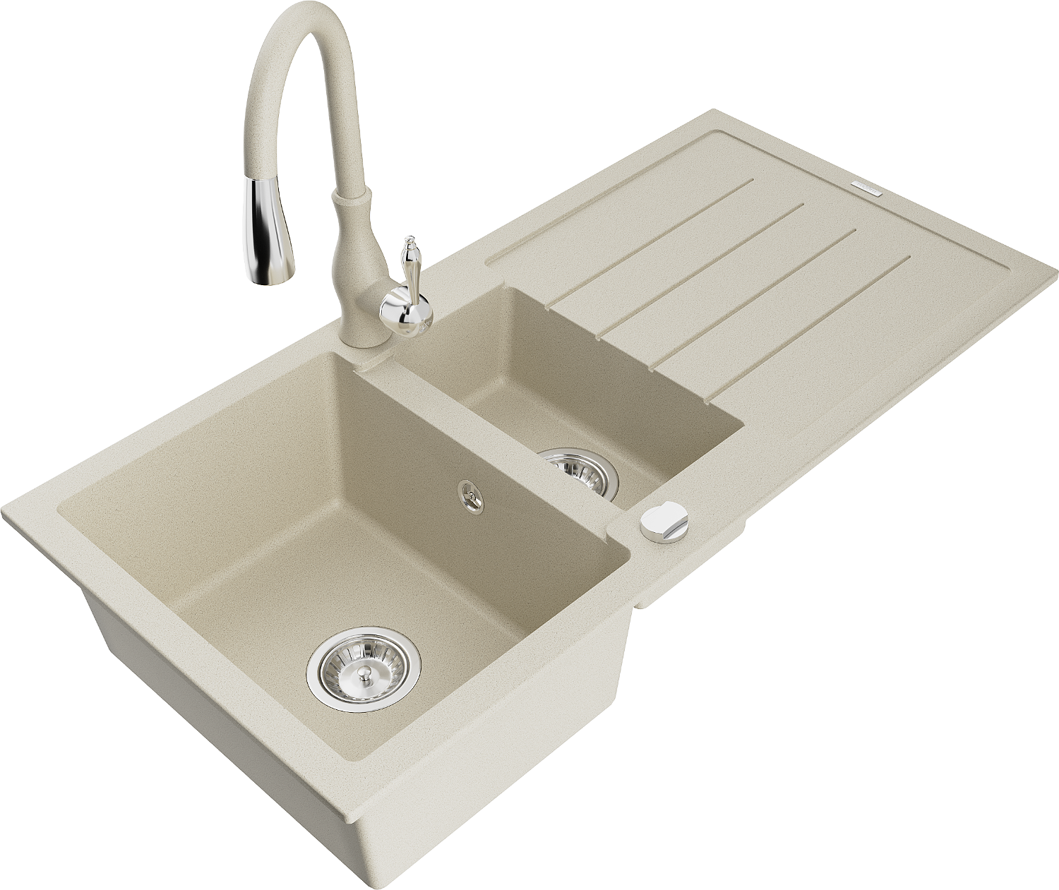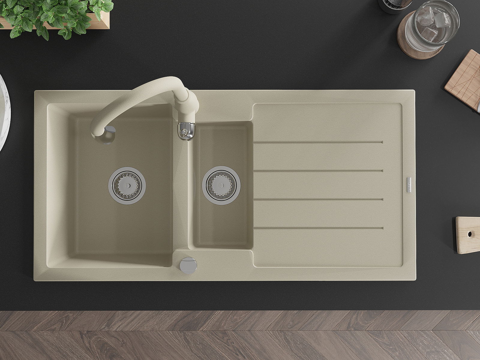 Mexen Andres granitový dřez 1,5-komorový s odkapávačem a kuchyňskou baterií Savita, béžový - 6515-69-672601-69