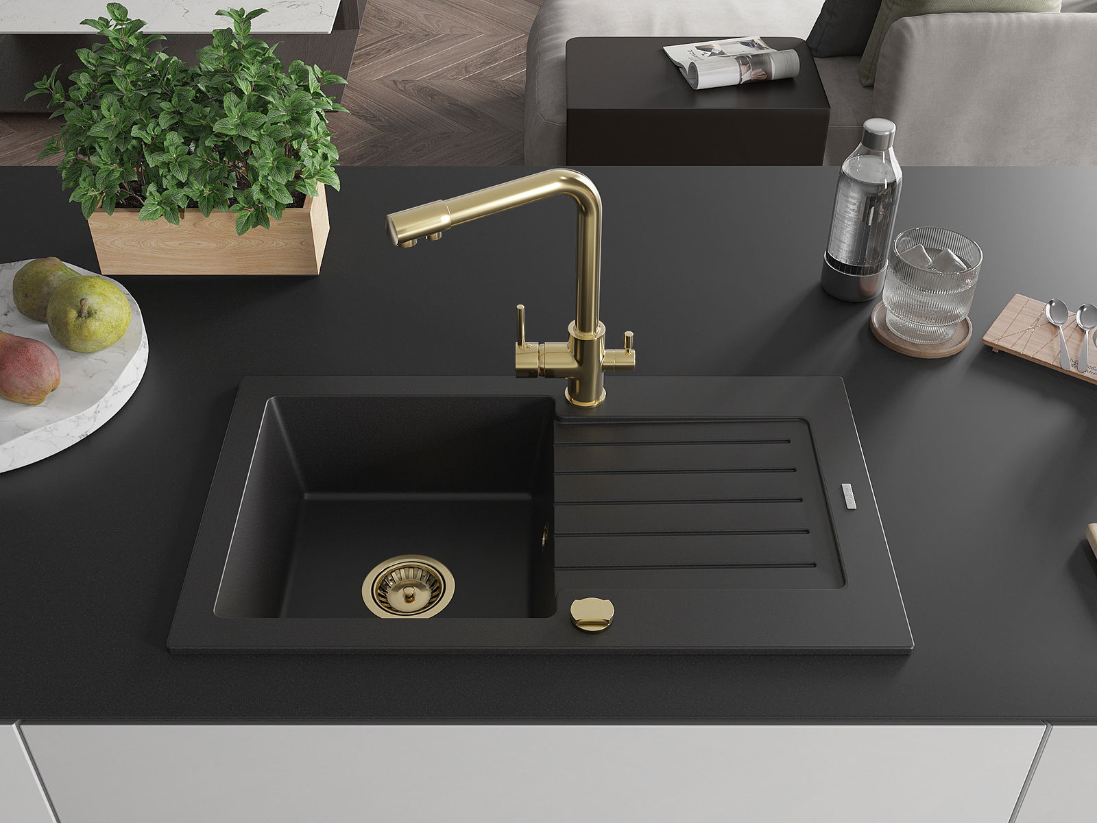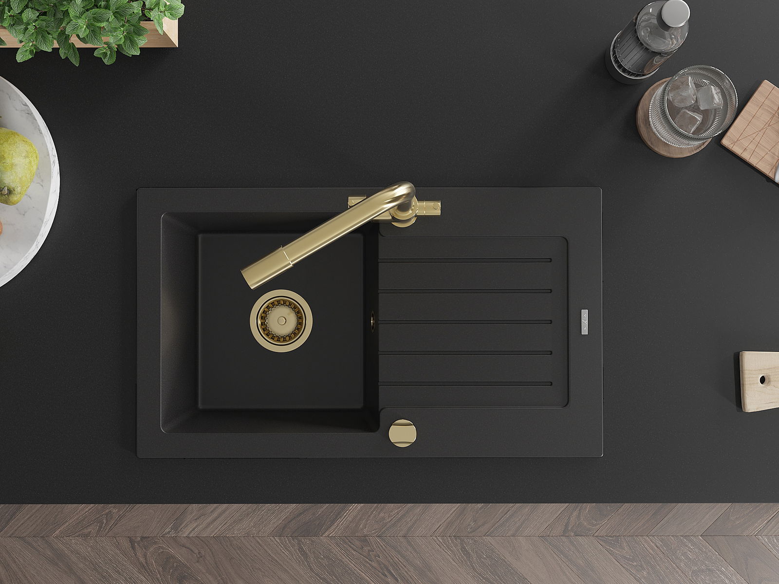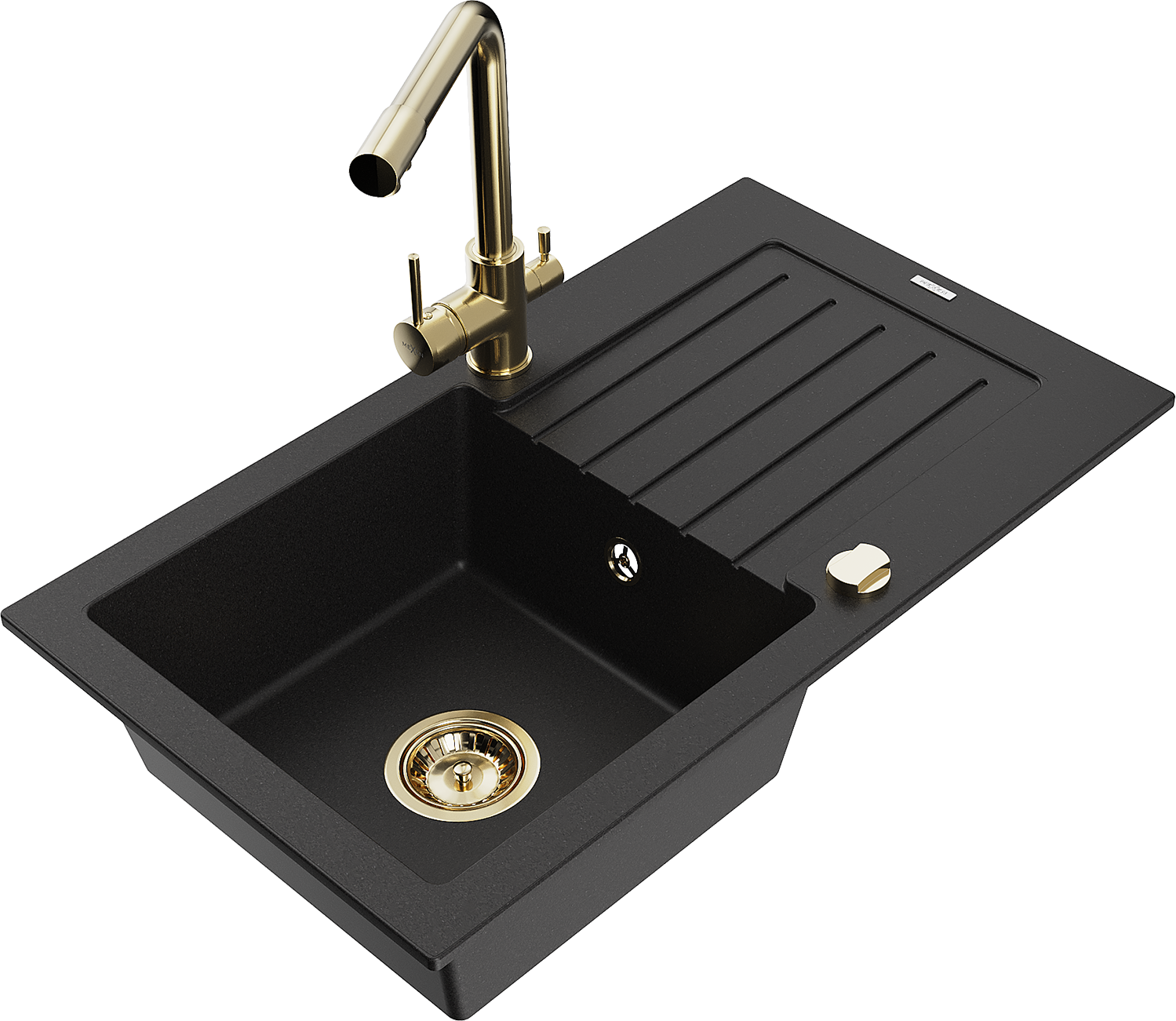 Mexen Pablo granitový dřez s odkapávačem a kuchyňskou baterií Duero, černý - 6510-77-671600-50