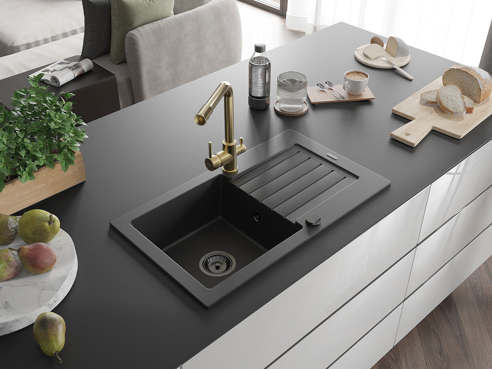 Dřez byl vyroben z vysoce kvalitního granitu. Představuje elegantní a především praktický doplněk každé kuchyně, bez ohledu na její styl. Vysoká kvalita a trvanlivost granitu zajišťují dlouholeté používání.