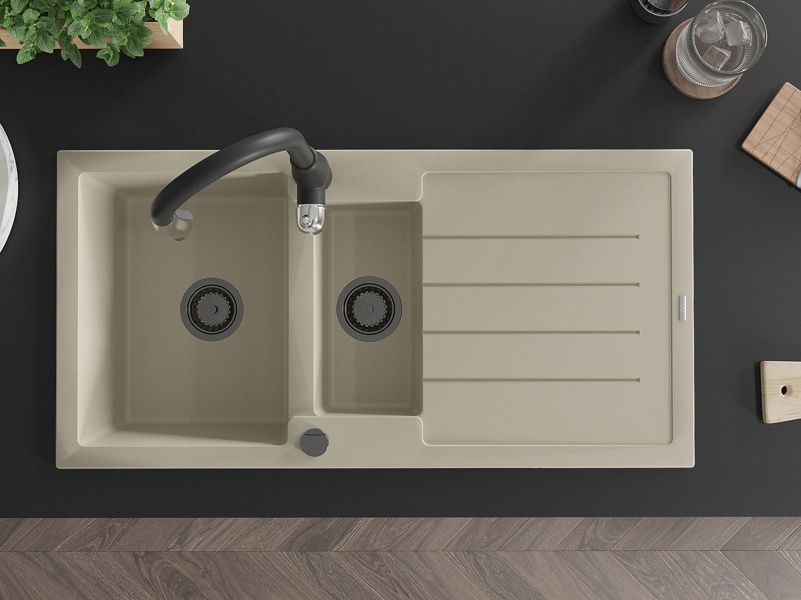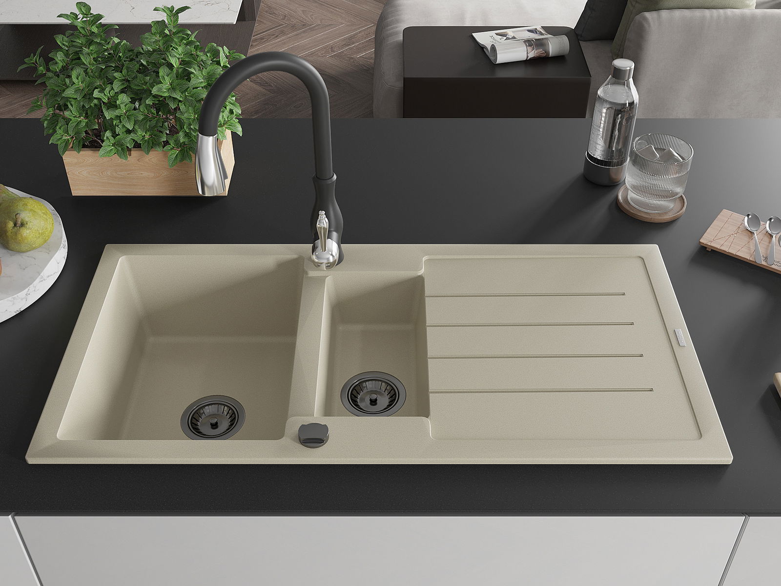 Dřez byl vyroben z vysoce kvalitního granitu. Představuje elegantní a především praktický doplněk každé kuchyně, bez ohledu na její styl. Vysoká kvalita a trvanlivost granitu zajišťují dlouholeté používání.