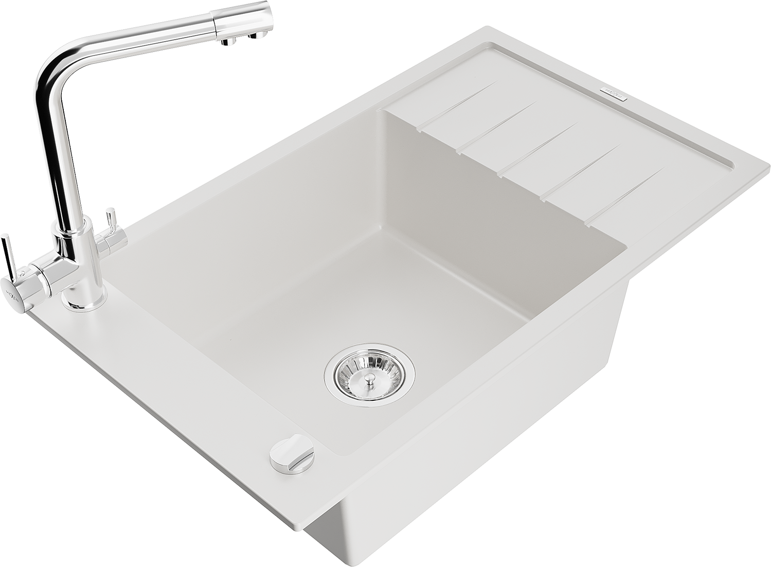 Povrch dřezu je velmi dobře vytvrzený, vyznačuje se výjimečnou odolností proti mechanickému poškození a poškrábání. Trvanlivý materiál umožňuje užívat si dobrý vzhled dřezu po mnoho let používání.
