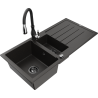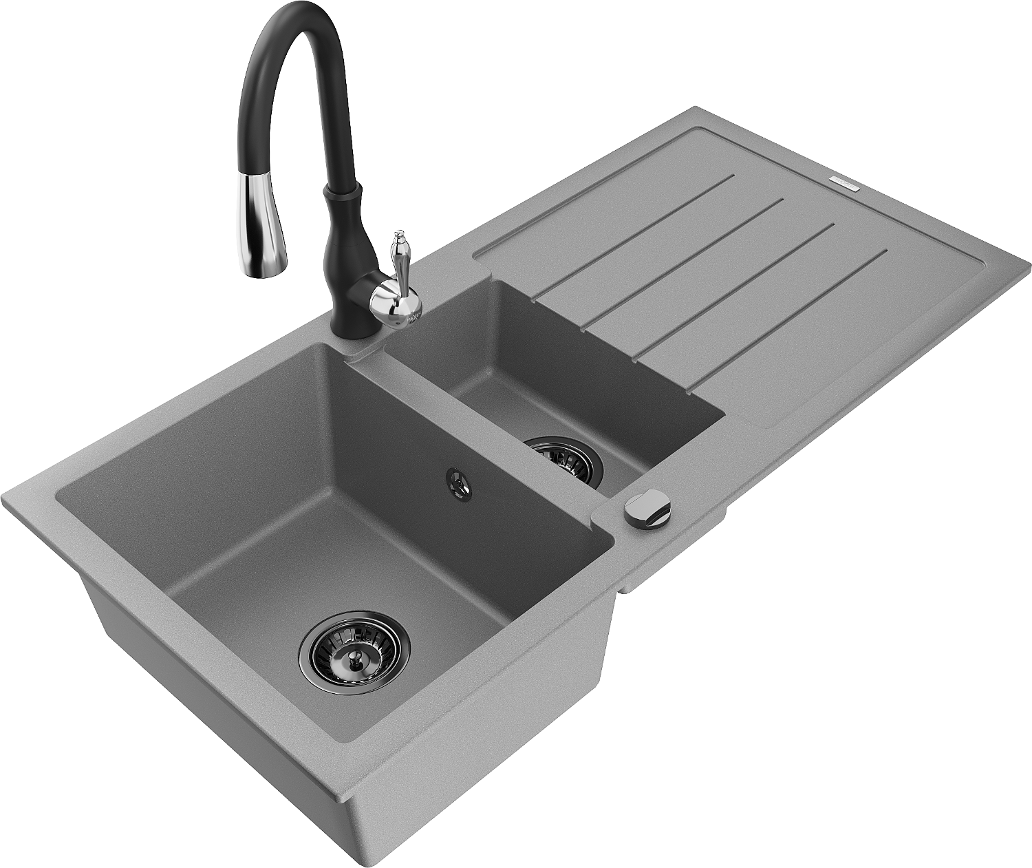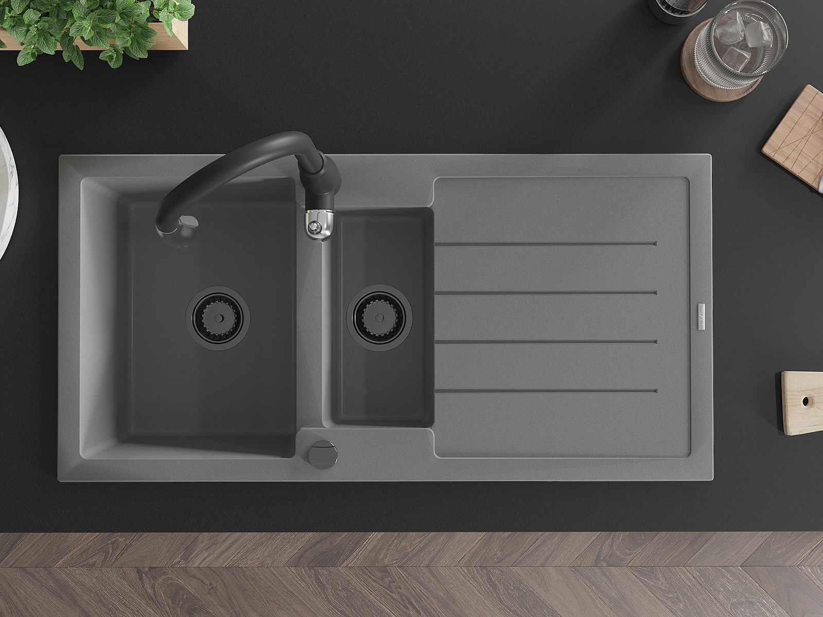 Mexen Andres granitový dřez 1,5-komorový s odkapávačem a kuchyňskou baterií Savita, šedý - 6515-71-672601-70-B