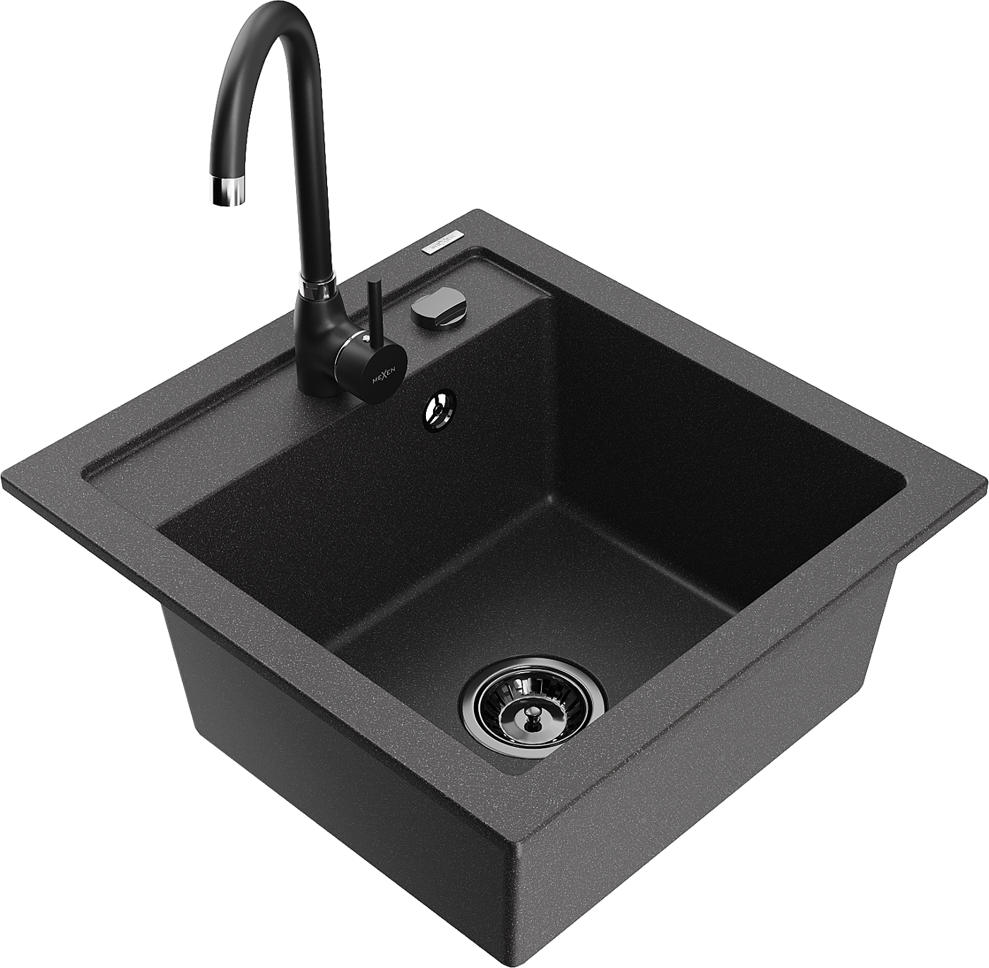 • Mexen Vito granitový dřez 1-komorový s kuchyňskou baterií Telma, černý skvrnitý - 6503-76-670200-70-B