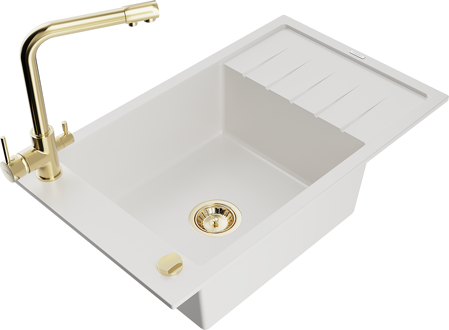 Mexen Elias dřez granitový 1-komorový s odkapávačem a kuchyňskou baterií Duero, bílý - 6511-20-671600-50