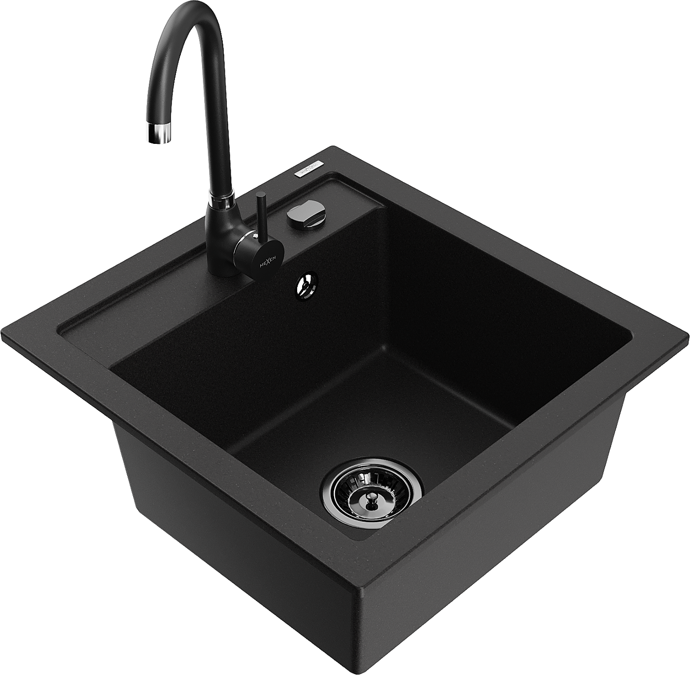 Mexen Vito granitový dřez 1-komorový s kuchyňskou baterií Telma, černý - 6503-77-670200-70-B