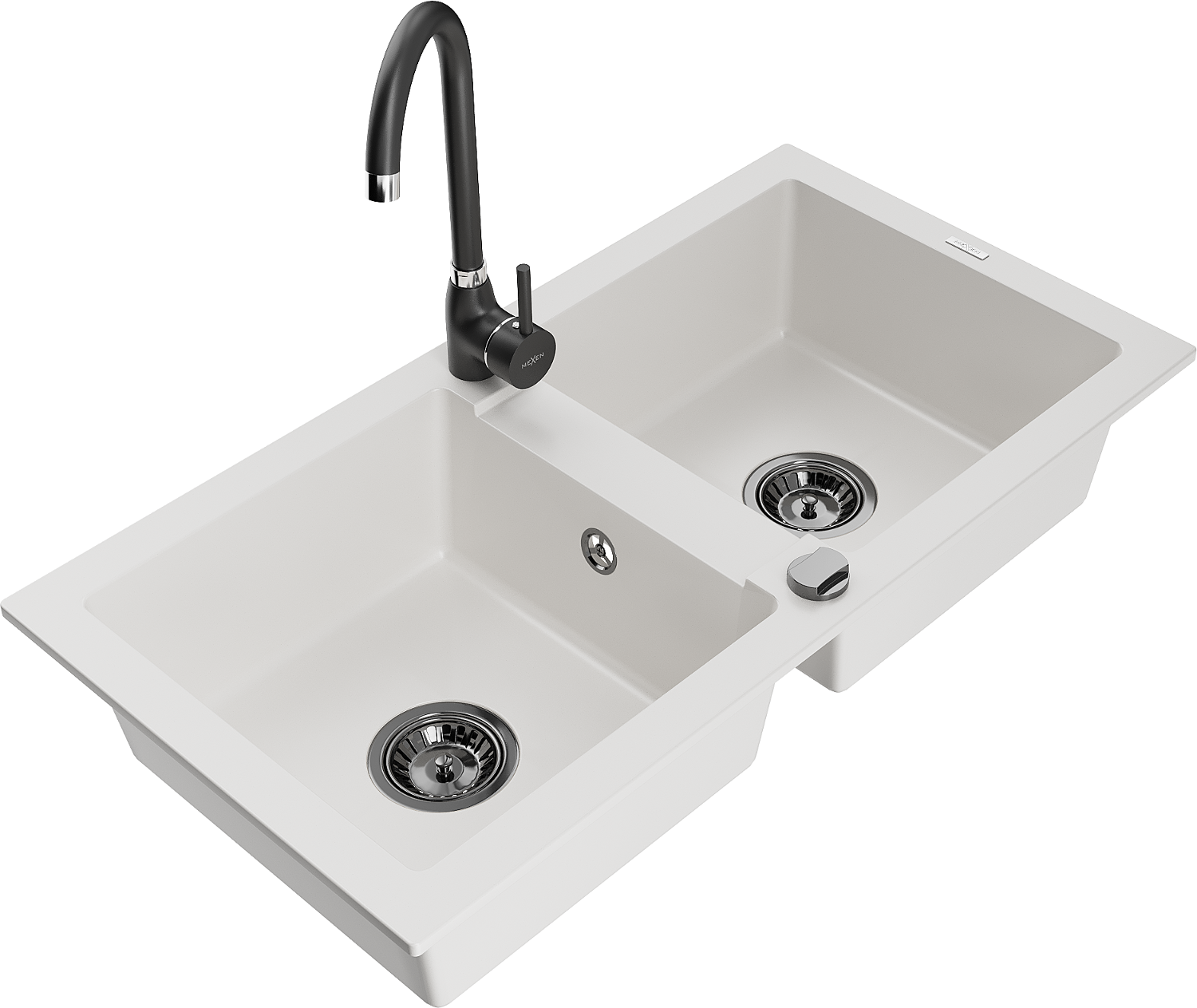 Mexen Mario dvoukomorový granitový dřez s kuchyňskou baterií Telma, bílý - 6504-20-670200-70