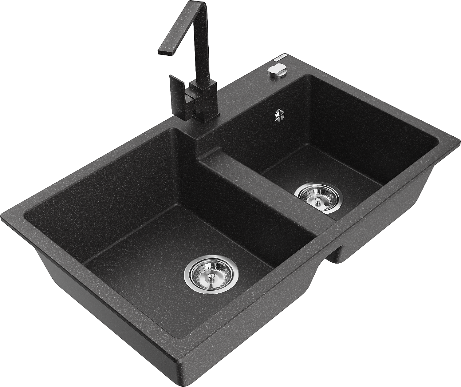 Mexen Tomas žulový dřez s 2 komorami a kuchyňskou baterií Rita, černý skvrnitý - 6516-76-670300-76