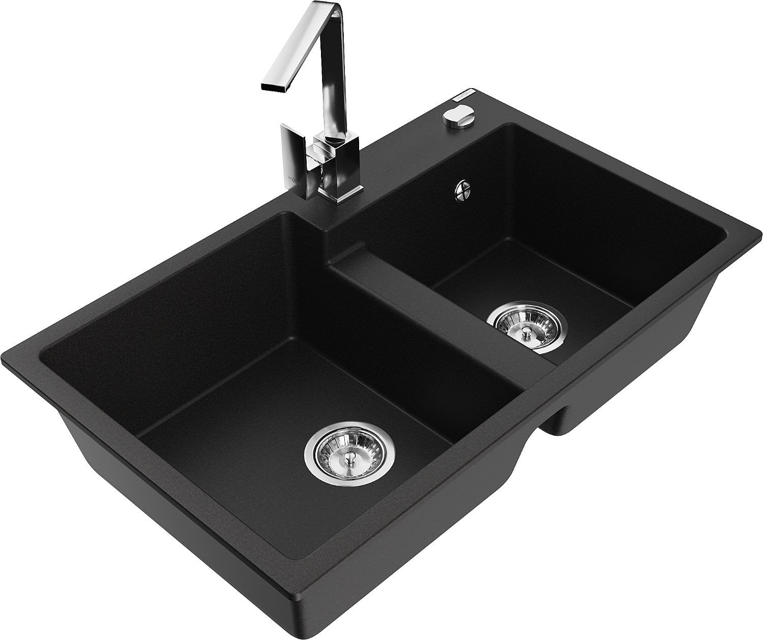 Mexen Tomas žulový dřez 2komorový s kuchyňskou baterií Rita, černý - 6516-77-670300-00
