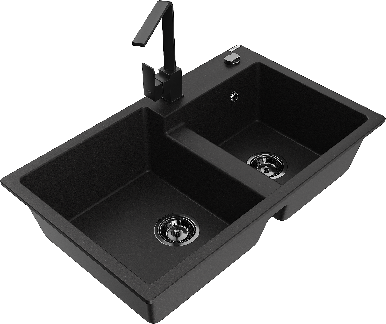 Mexen Tomas granitový dřez 2-komorový s kuchyňskou baterií Rita, černý - 6516-77-670300-70-B