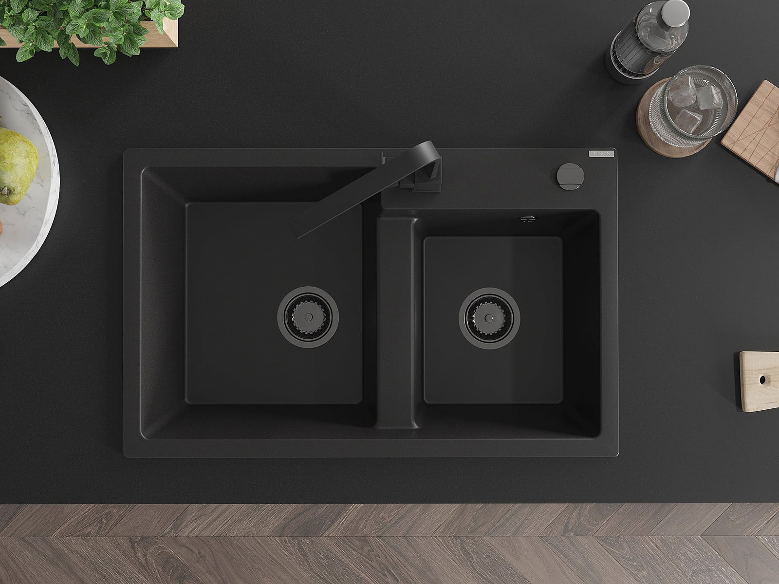 Dřez má předfrézovaný otvor o průměru 35 mm k samostatnému proražení. Může být použit například k montáži dávkovače na tekutinu, který eliminuje přítomnost plastových lahví v kuchyni a dodá jí elegantní finiš.