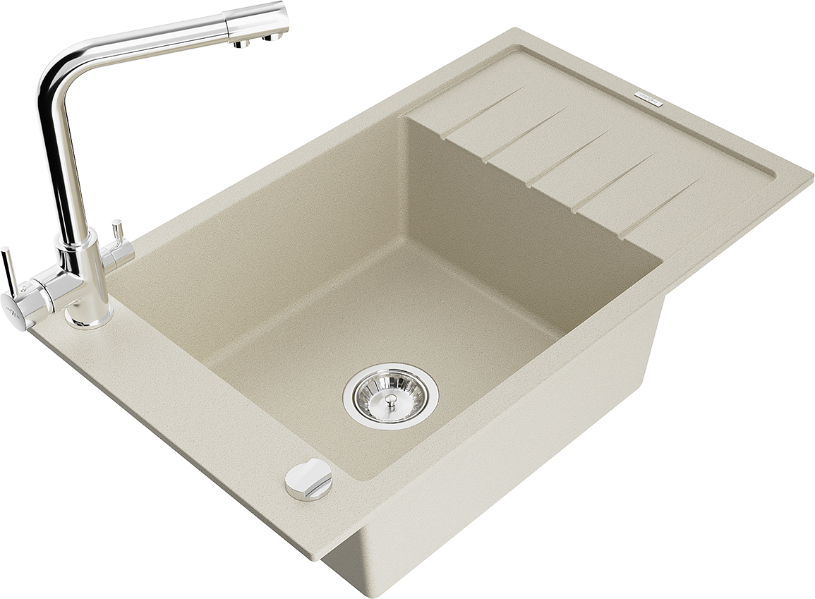 Mexen Elias granitový dřez 1-komorový s odkapávačem a kuchyňskou baterií Duero, béžový - 6511-69-671600-00