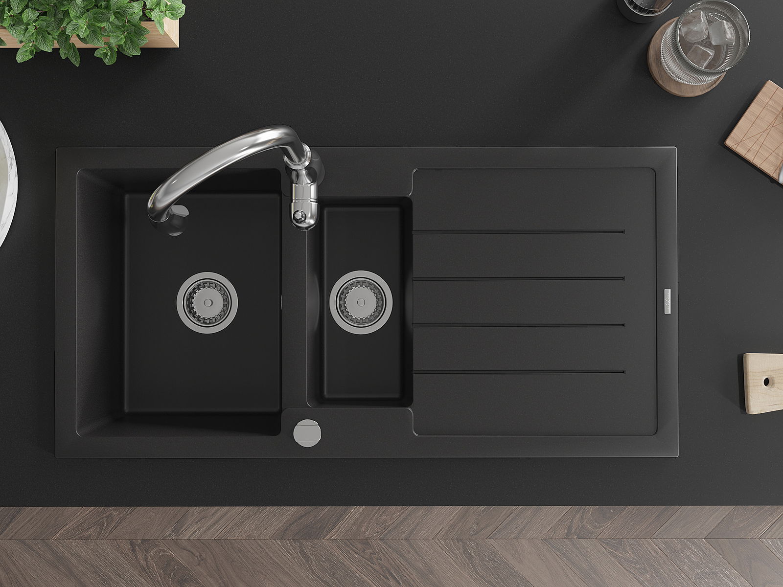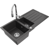 Mexen Andres granitový dřez 1,5-komorový s odkapávačem a kuchyňskou baterií Savita, černý - 6515-77-672601-00