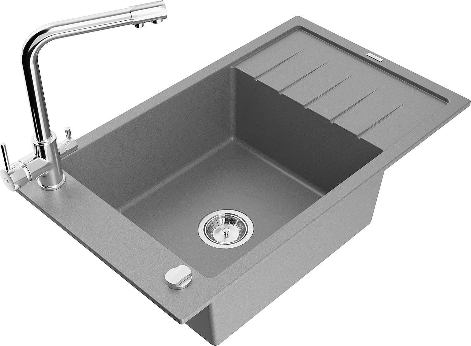 Mexen Elias granitový dřez s 1 komorou s odkapávačem a kuchyňskou baterií Duero, šedý - 6511-71-671600-00