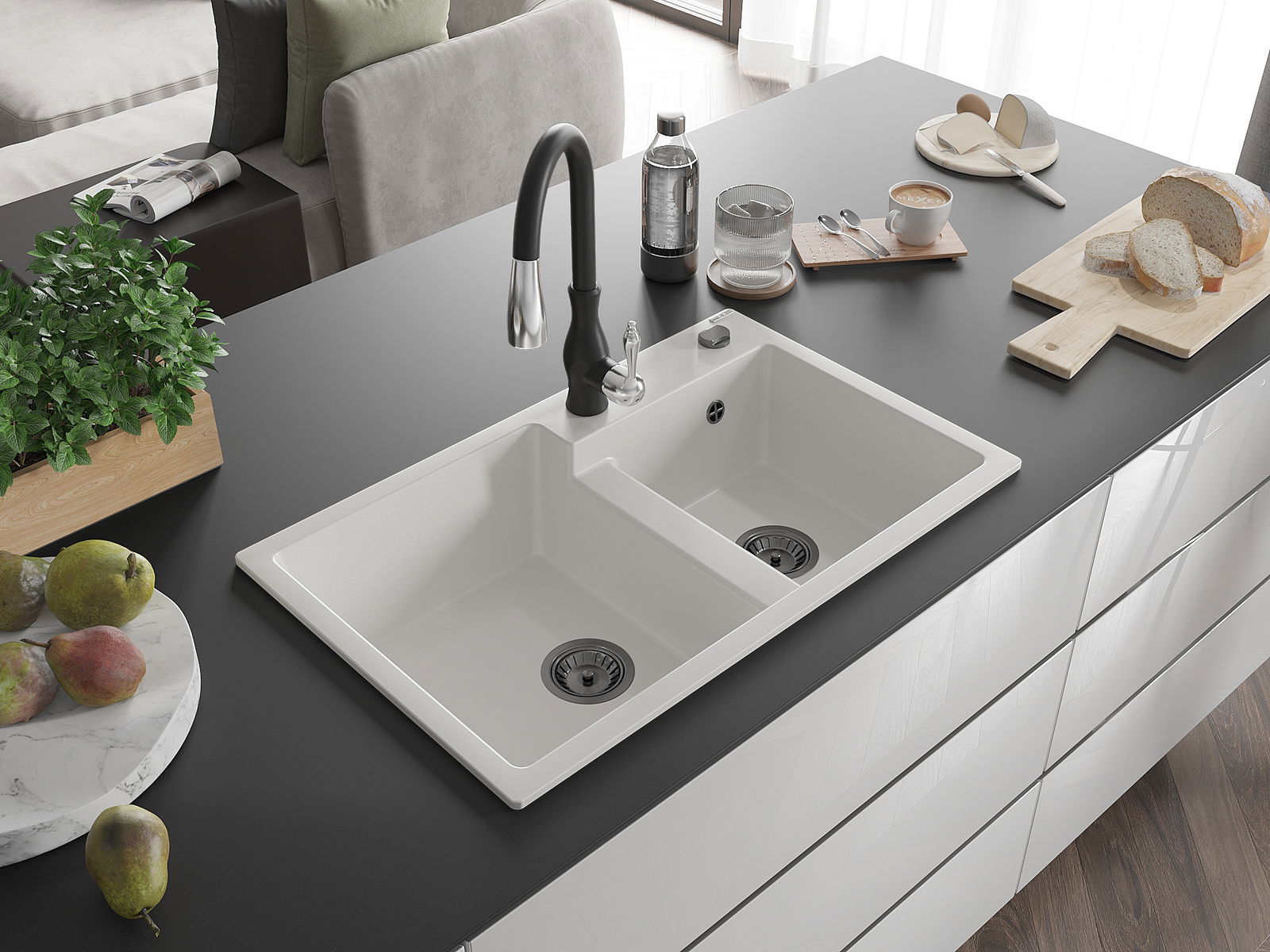 Dřez byl vyroben z vysoce kvalitního granitu. Představuje elegantní a především praktický doplněk každé kuchyně, bez ohledu na její styl. Vysoká kvalita a trvanlivost granitu zajišťují dlouholeté používání.