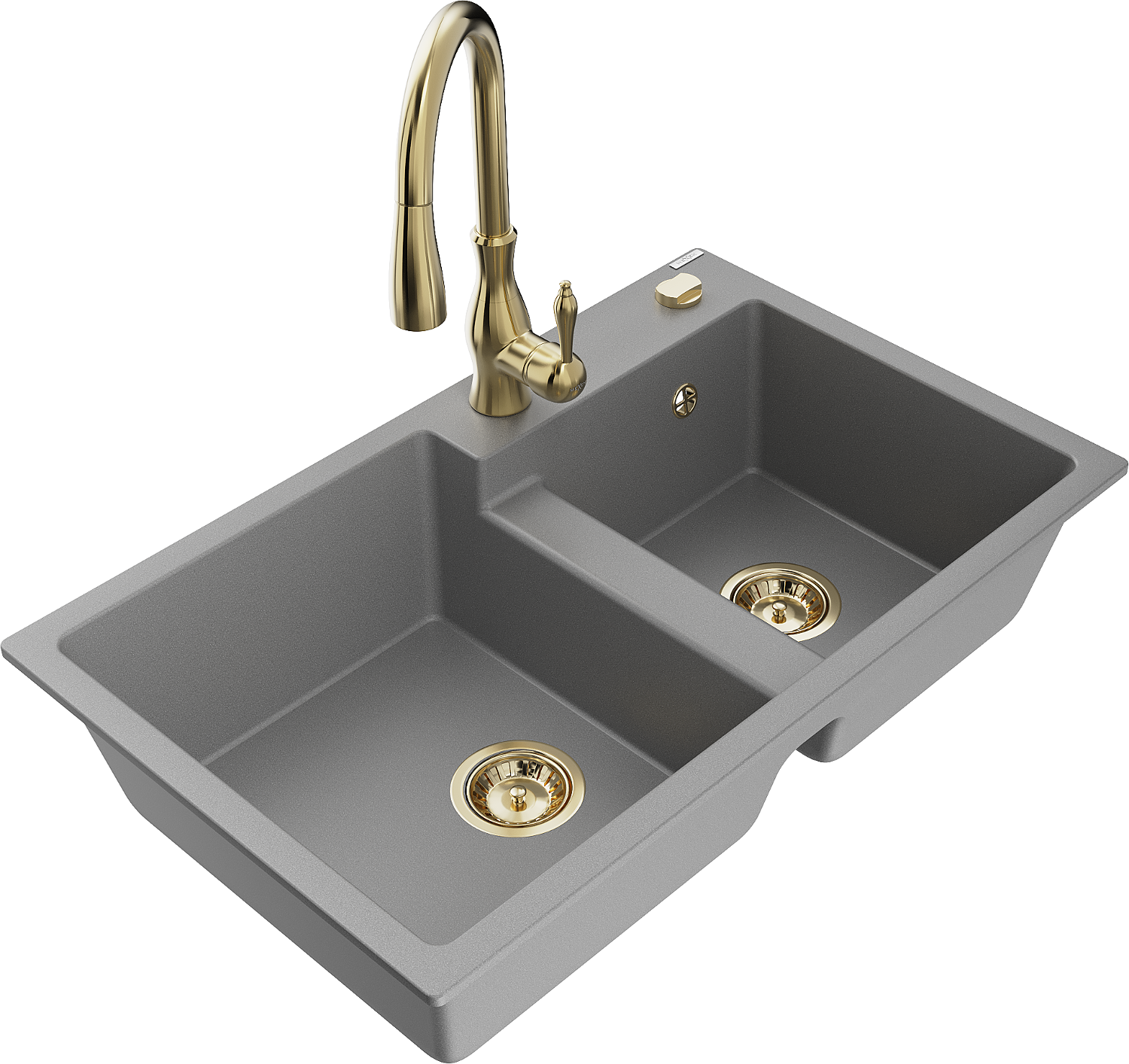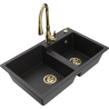 Mexen Tomas granitový dřez 2-komorový s kuchyňskou baterií Savita, šedý - 6516-71-672601-50