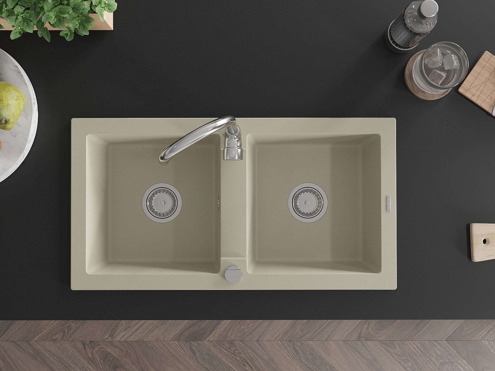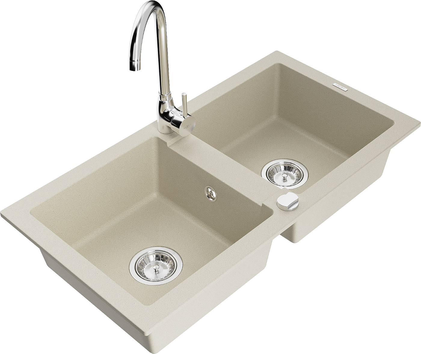 Mexen Mario granitový dřez 2-komorový s kuchyňskou baterií Telma, béžový - 6504-69-670200-00