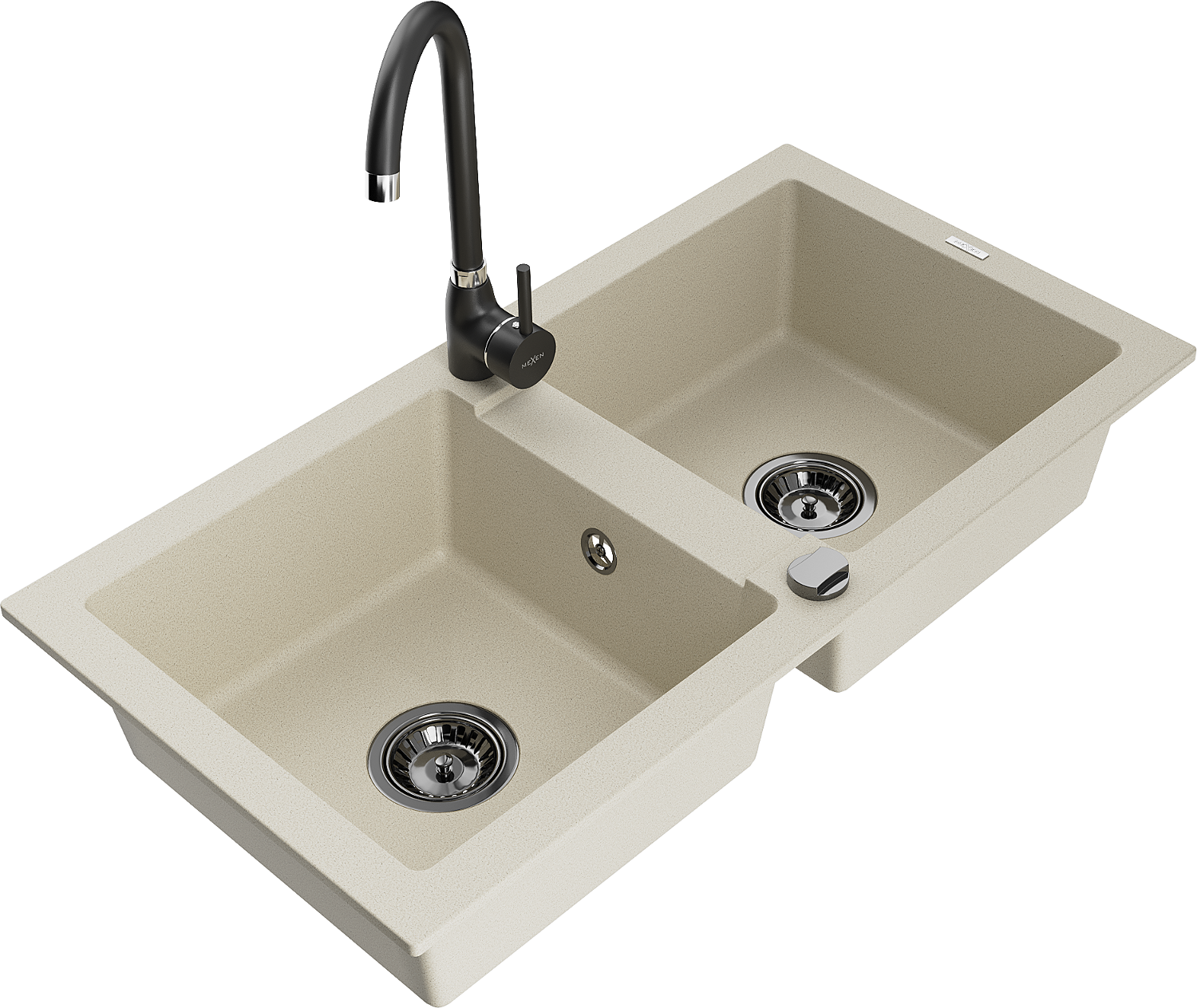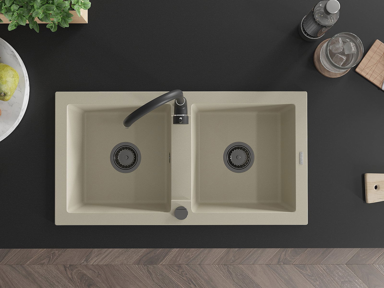Mexen Mario dvoukomorový granitový dřez s kuchyňskou baterií Telma, béžový - 6504-69-670200-70