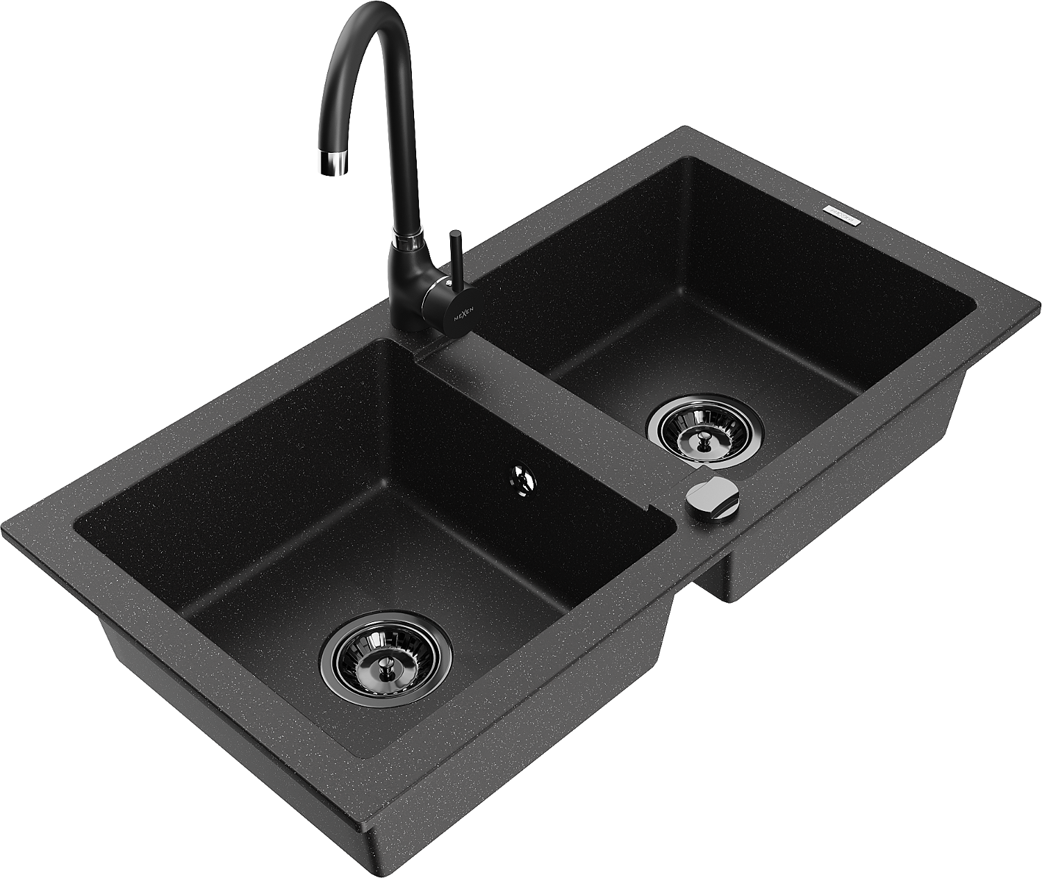 Mexen Mario dřez žulový 2-komorový s kuchyňskou baterií Telma, černý/stříbrný - 6504-73-670200-70-B
