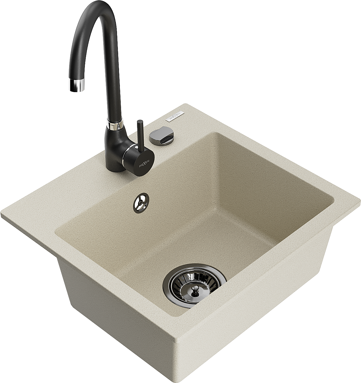 Mexen Milo granitový dřez 1-komorový s kuchyňskou baterií Telma, béžový - 6505-69-670200-70