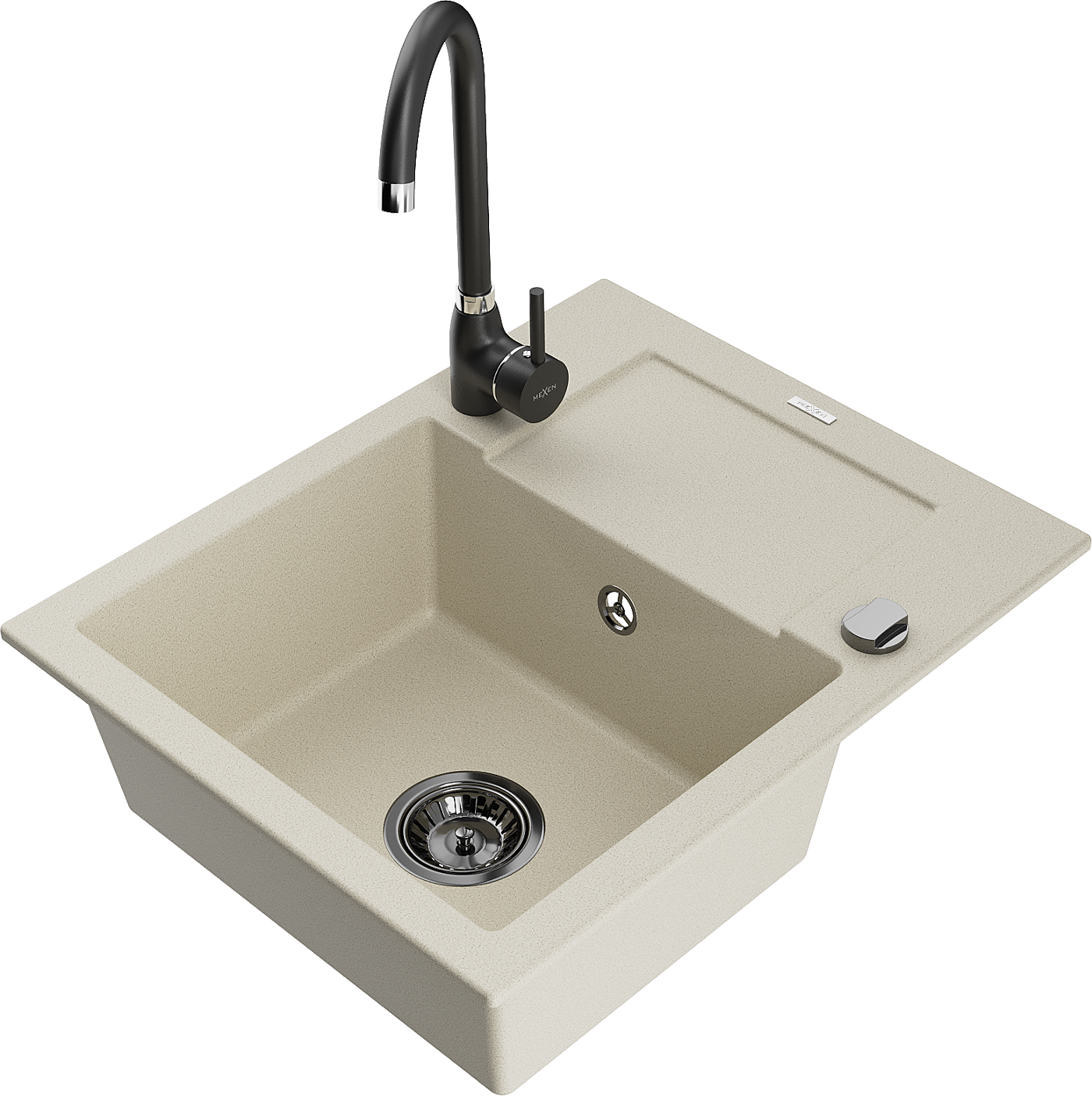 Mexen Enzo granitový dřez 1-komorový s odkapávačem a kuchyňskou baterií Telma, béžový - 6506-69-670200-70