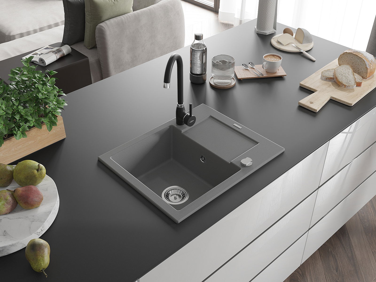 Dřez byl vyroben z vysoce kvalitního granitu. Představuje elegantní a především praktický doplněk každé kuchyně, bez ohledu na její styl. Vysoká kvalita a trvanlivost granitu zajišťují dlouholeté používání.