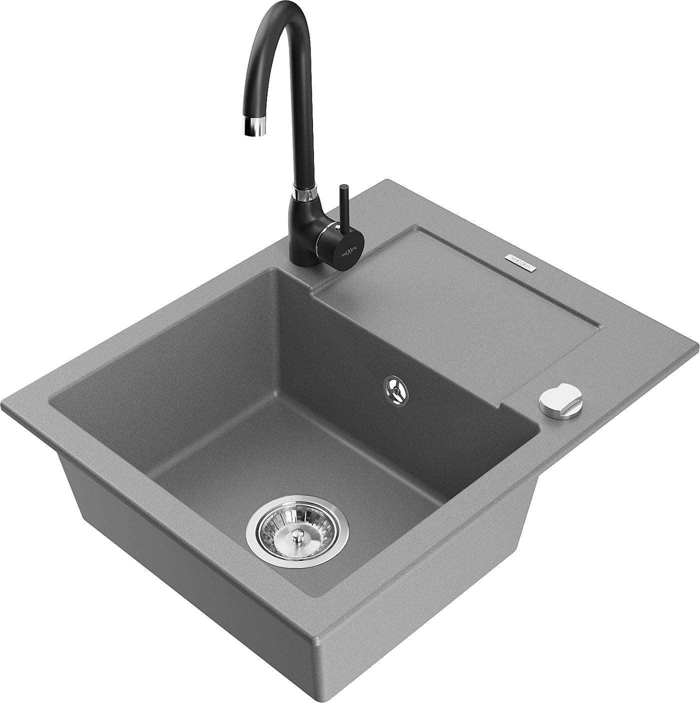 Mexen Enzo granitový kuchyňský dřez 1-komorový s odkapávačem a kuchyňskou baterií Telma, šedý - 6506-71-670200-70