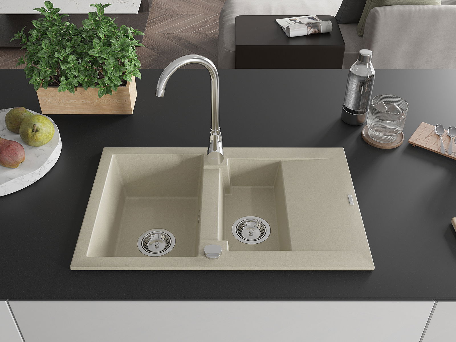 Dřez byl vyroben z vysoce kvalitního granitu. Představuje elegantní a především praktický doplněk každé kuchyně, bez ohledu na její styl. Vysoká kvalita a trvanlivost granitu zajišťují dlouholeté používání.