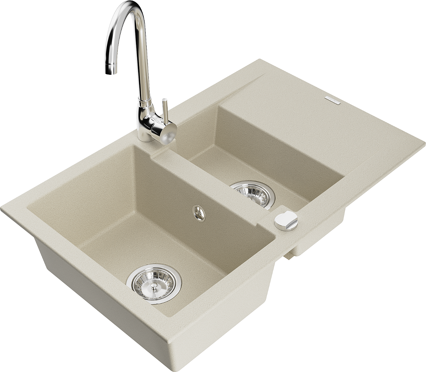 Mexen Gaspar žulový kuchyňský dřez 1,5-komorový s odkapávačem a kuchyňskou baterií Telma, béžový - 6507-69-670200-00