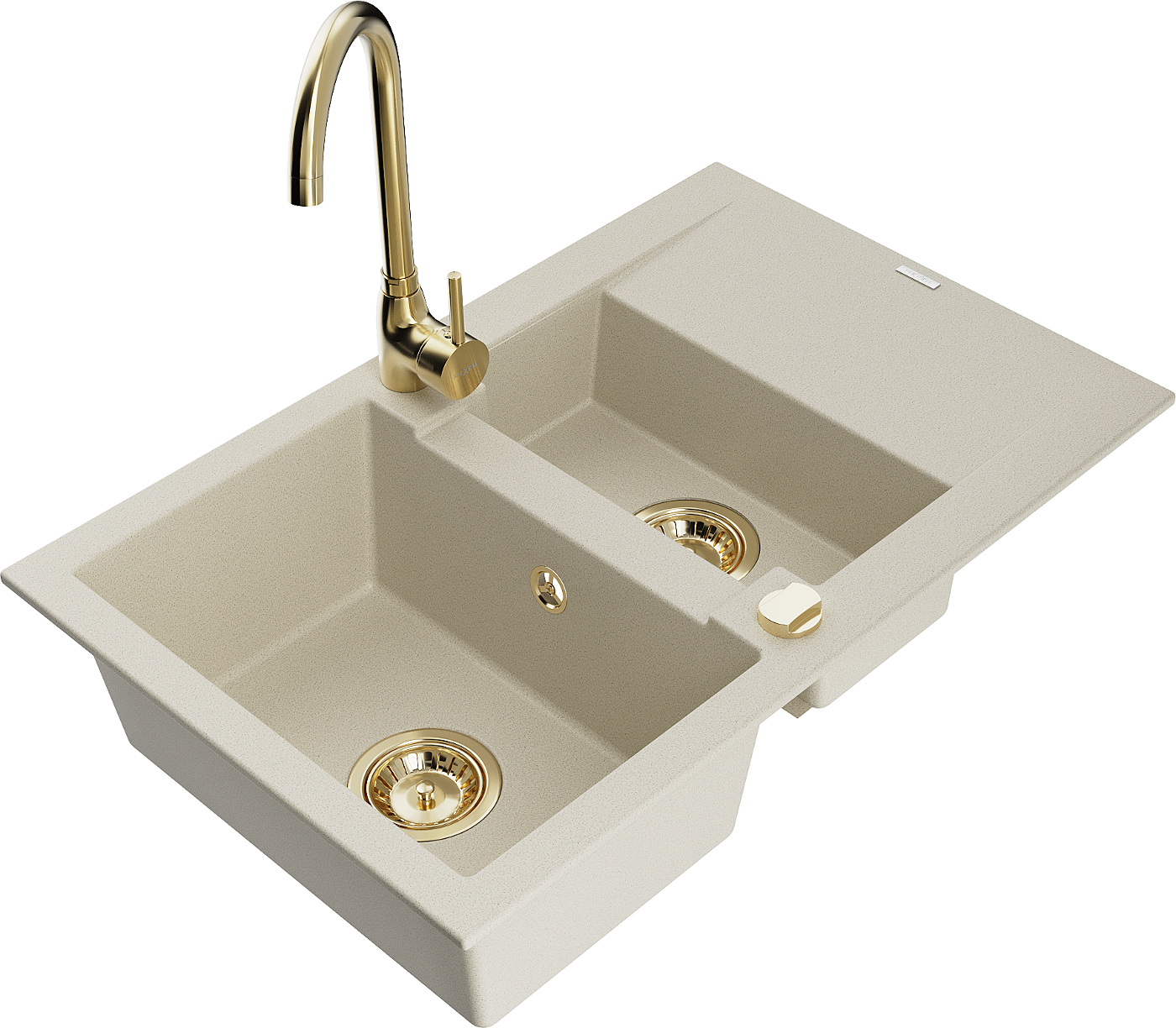 Mexen Gaspar, granitový dřez 1,5-komorový s odkapávačem a kuchyňskou baterií Telma, béžový - 6507-69-670200-50