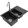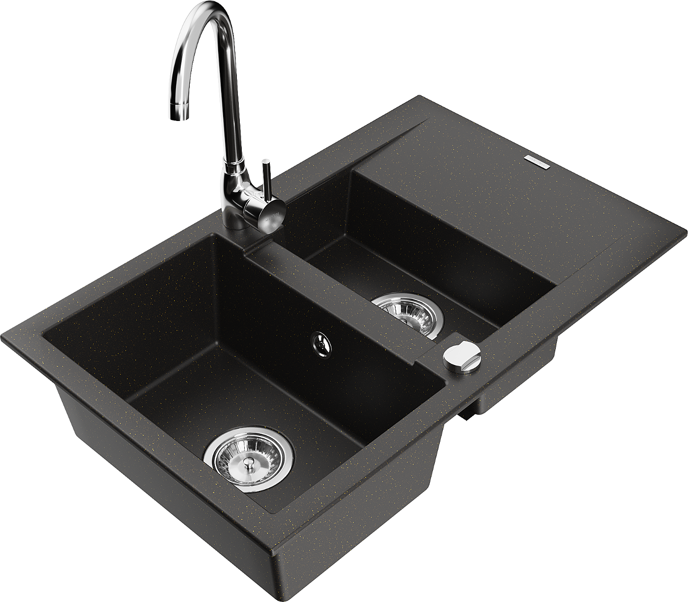 Mexen Gaspar granitový dřez s 1,5 komorou a odkapávačem a kuchyňskou baterií Telma, černý/zlatý - 6507-75-670200-00