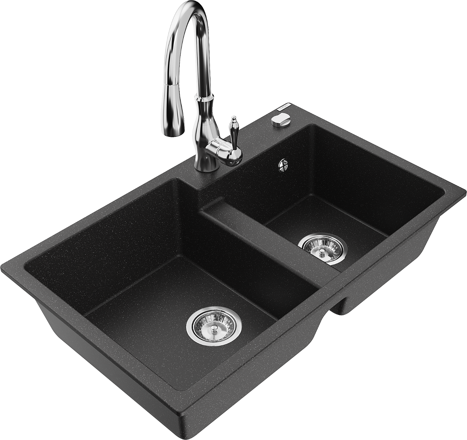 Mexen Tomas granitový dvoudřez s kuchyňskou baterií Savita, černý/stříbrný metalik - 6516-73-672601-00