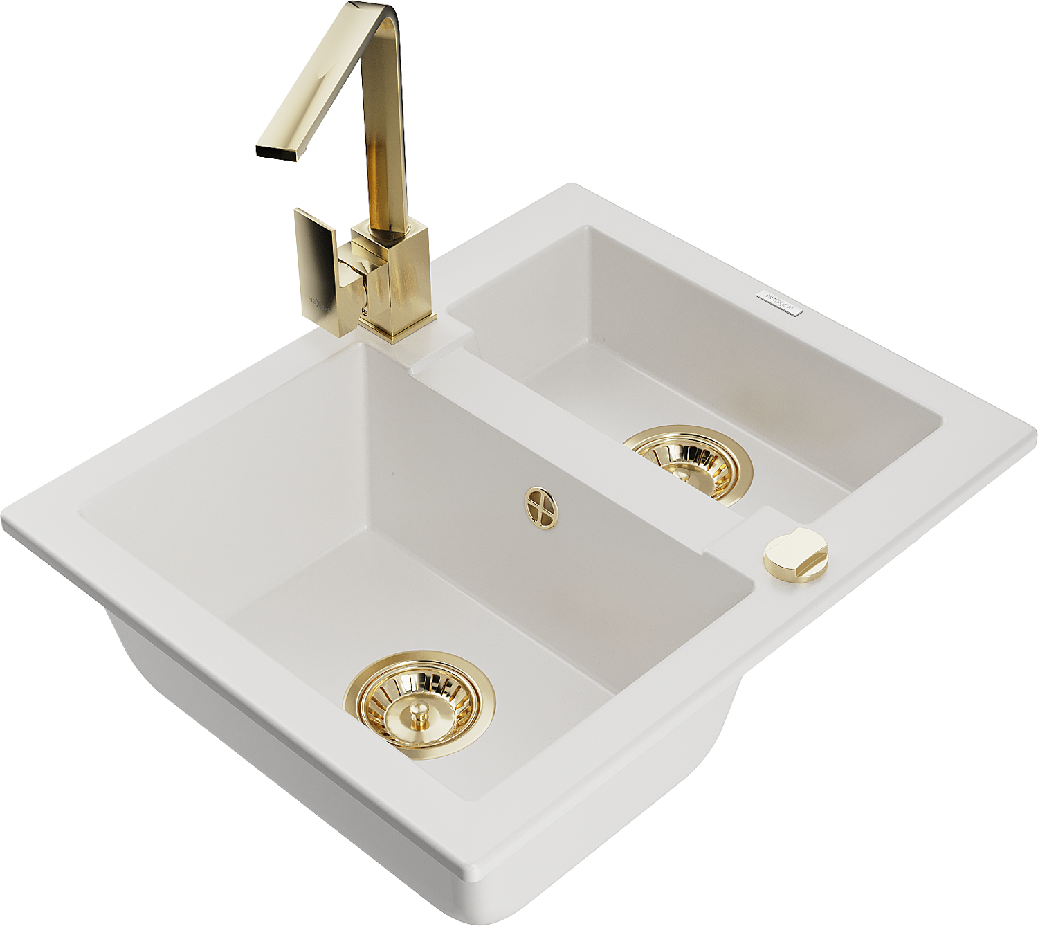Mexen Carlos granitový dřez 1,5-komorový s kuchyňskou baterií Rita, bílý - 6518-20-670300-50