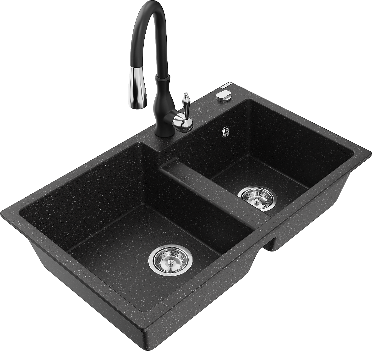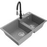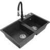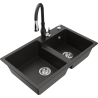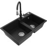 Mexen Tomas granitový dvoukomorový dřez s kuchyňskou baterií Savita, černý/stříbrný metalik - 6516-73-672601-70